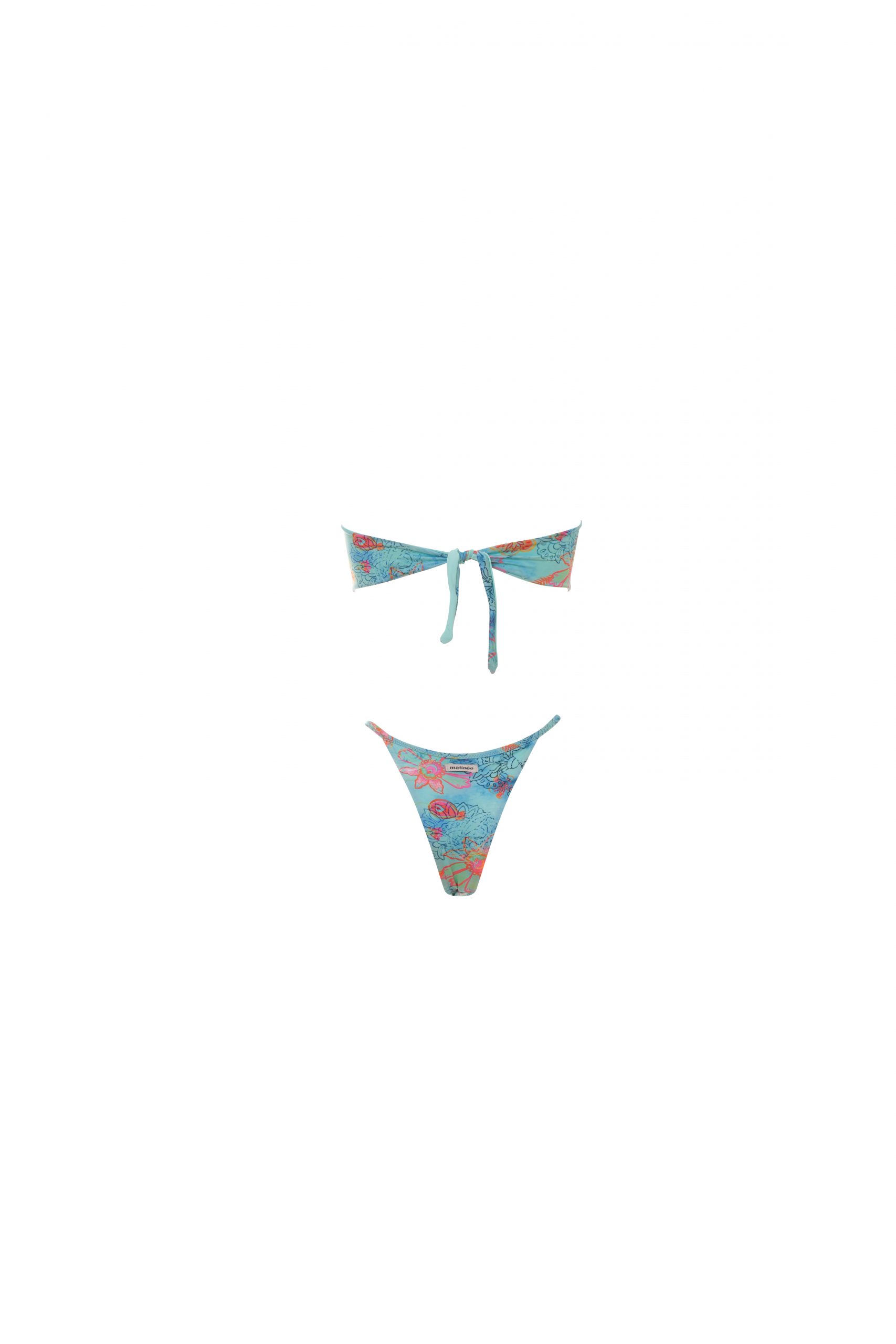 Ambre è il bikini che un top a fascia, impreziosito da un anello dorato centrale e uno slip sgambato regolabile. Lo slip ha una copertura minimal che rende i tuoi look sexy e femminili. Il top è dotato di coppe estraibili e un allacciatura sul retro con laccetti regolabili a piacimento. In fantasia bohemia di colore azzurro, una stampa unica per look estivo impeccabile. Realizzato in microfibra, un tessuto leggero e resistente, perfetto per costumi da bagno confortevoli.