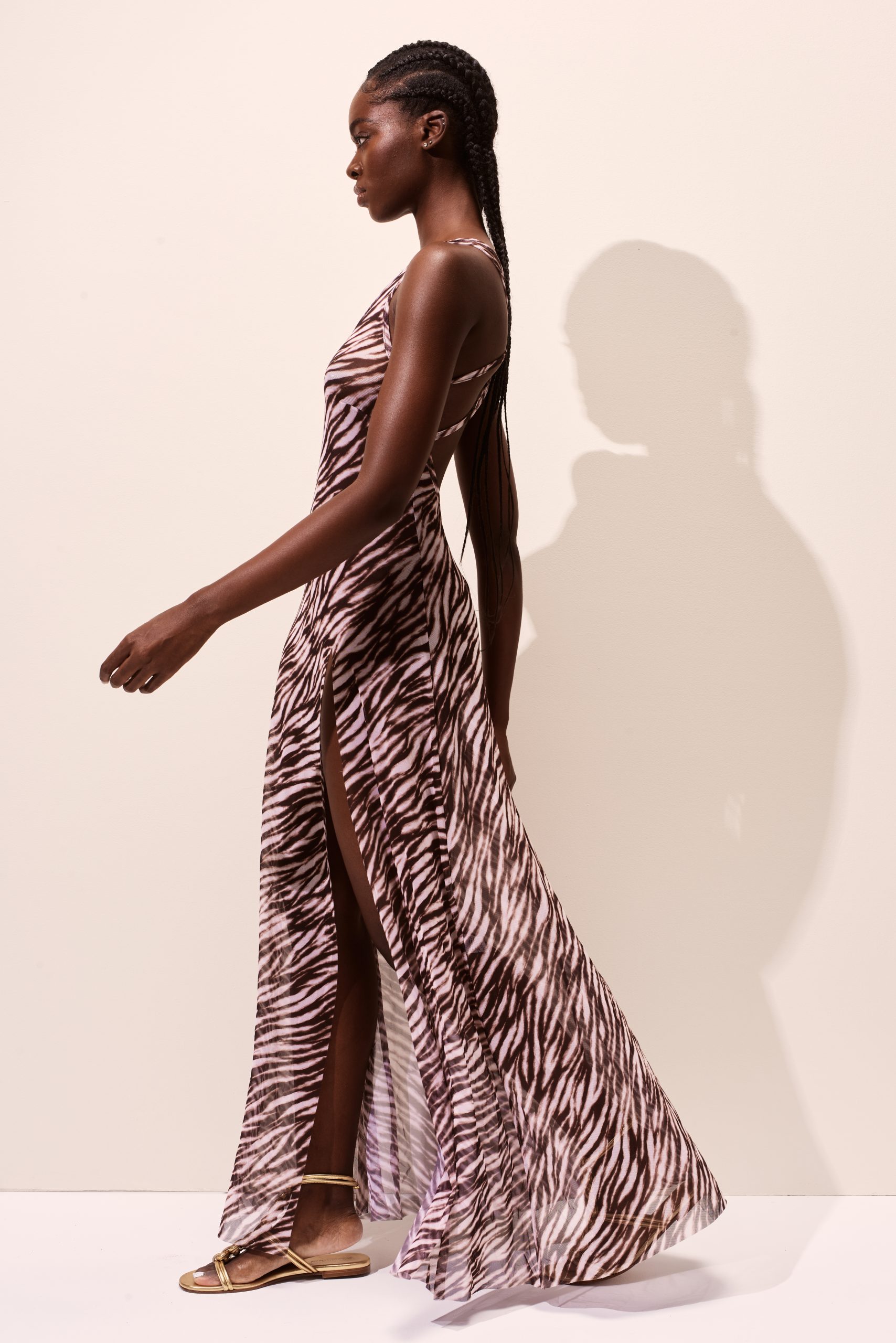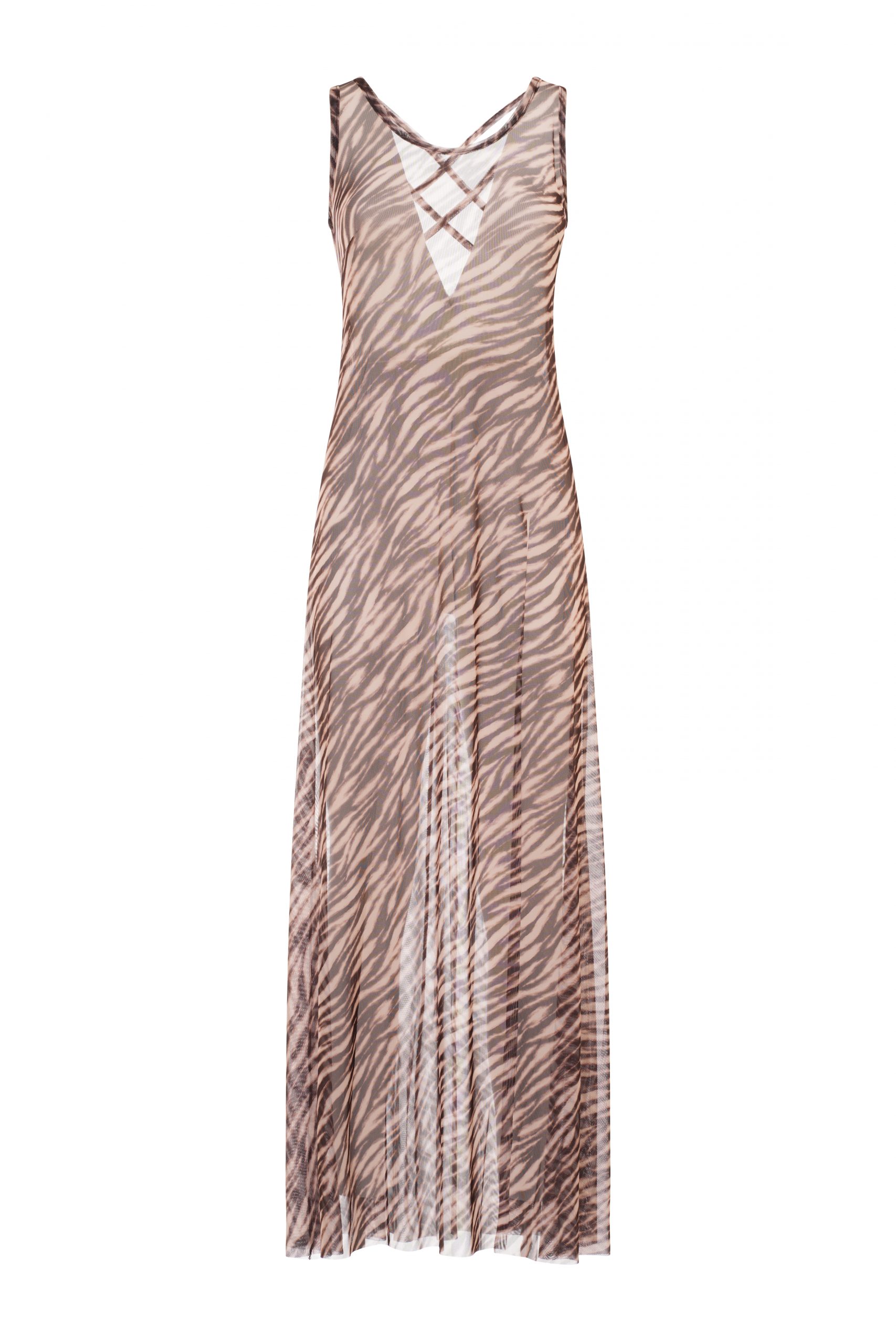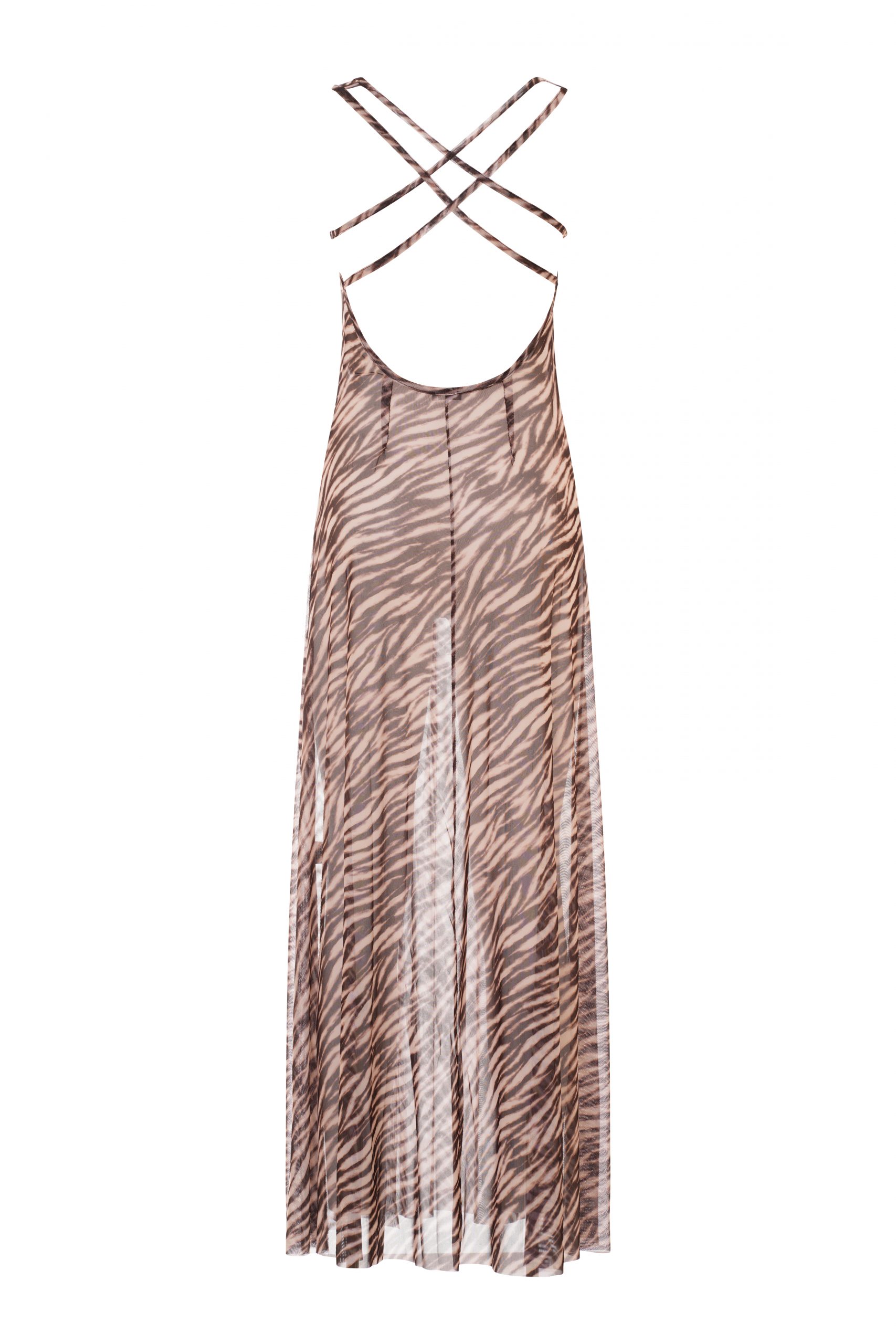 Angelina è l’abito con manica a giro, trasparenze ed intreccio sulla parte posteriore. È perfetto per creare un look estivo super trendy. Realizzato in tulle, un tessuto leggero e trasparente, per dettagli eleganti e femminili. In fantasia zebrato di colore marrone.