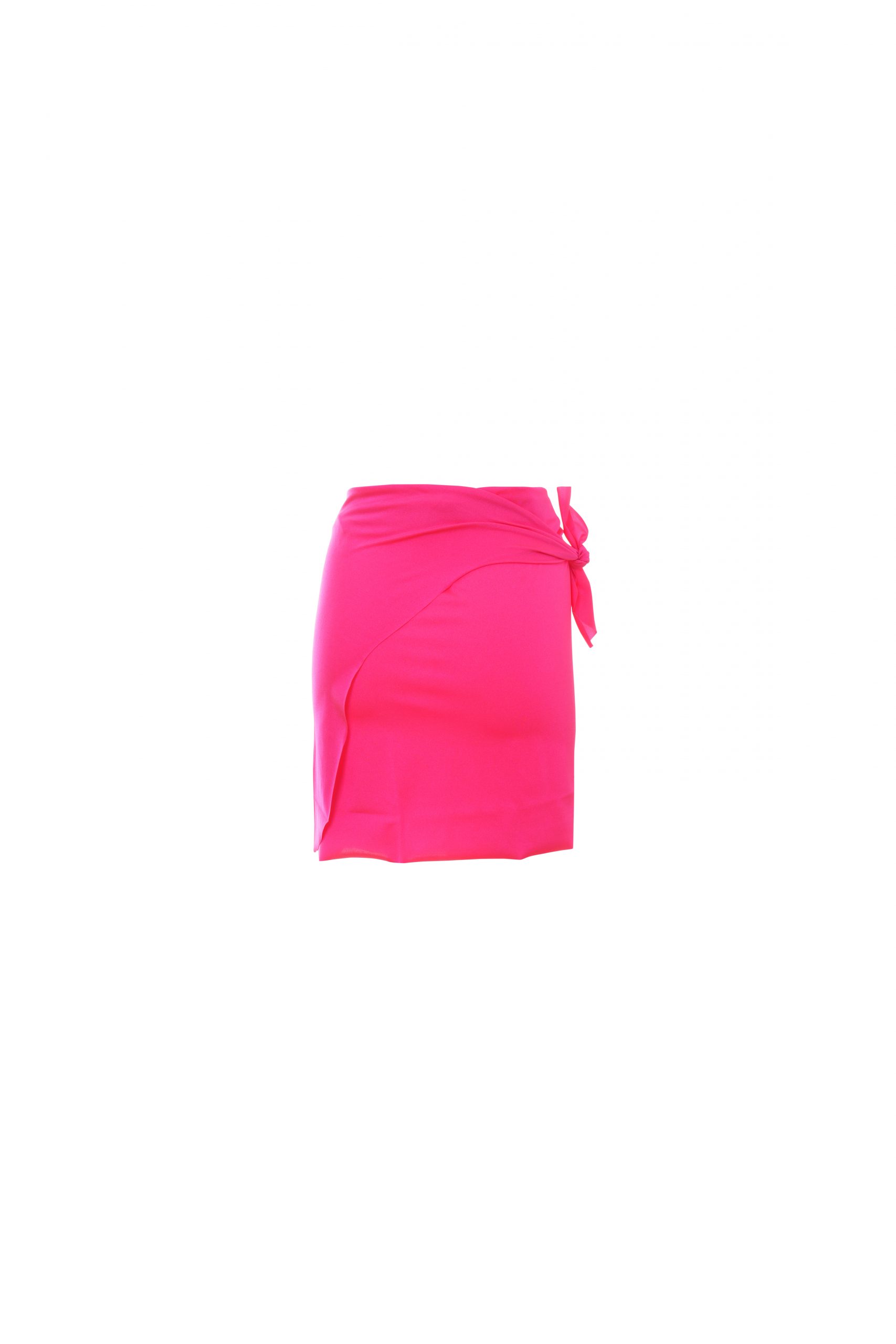 Annette è il pareo corto che completa il tuo look da spiaggia. La chiusura è interamente personalizzabile. Realizzato in lycra lucida, per un look elegante e luminoso. In tinta unita di colore fucsia.