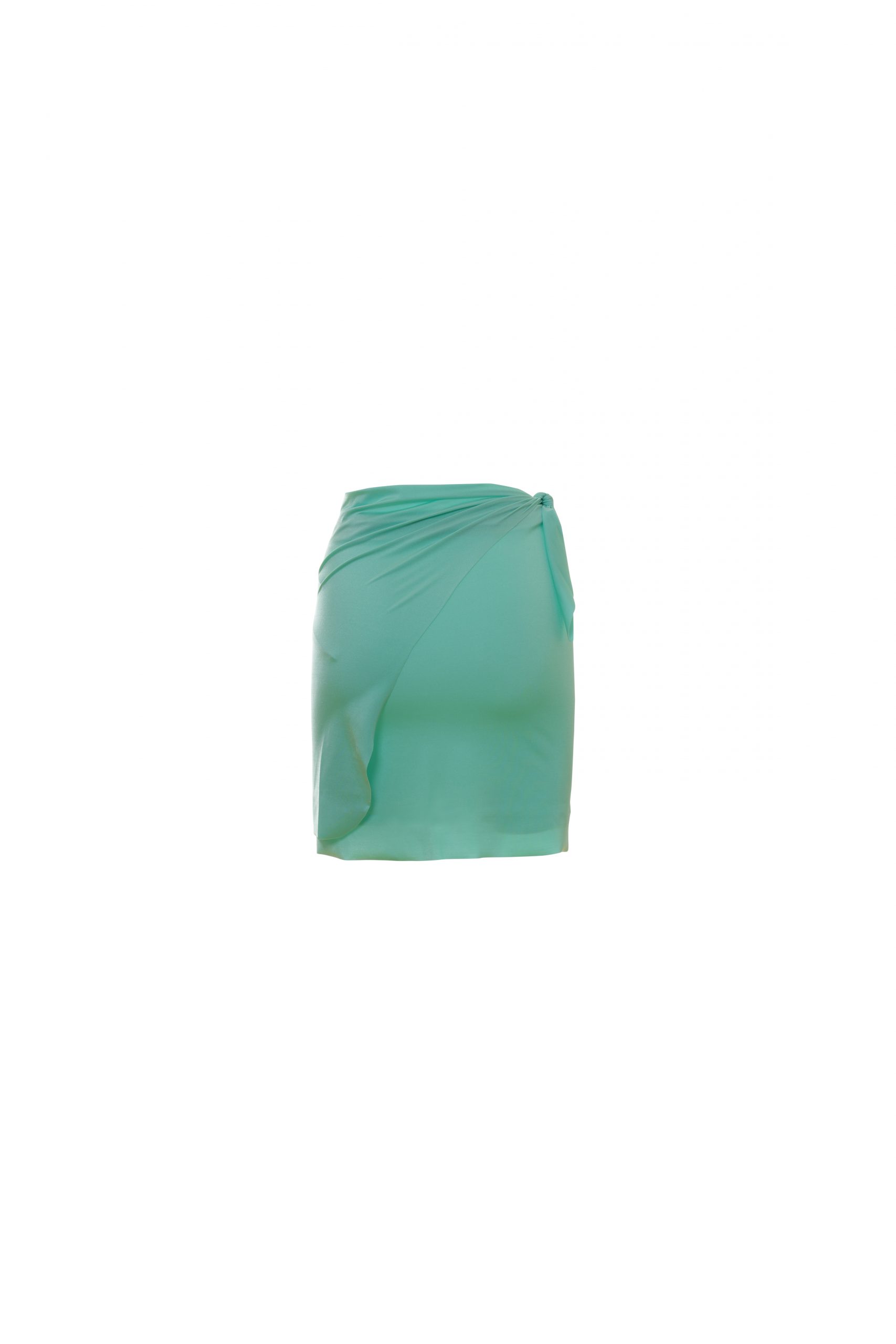 Annette è il pareo corto che completa il tuo look da spiaggia. La chiusura è interamente personalizzabile. Realizzato in lycra lucida, per un look elegante e luminoso. In tinta unita di colore verde acqua.