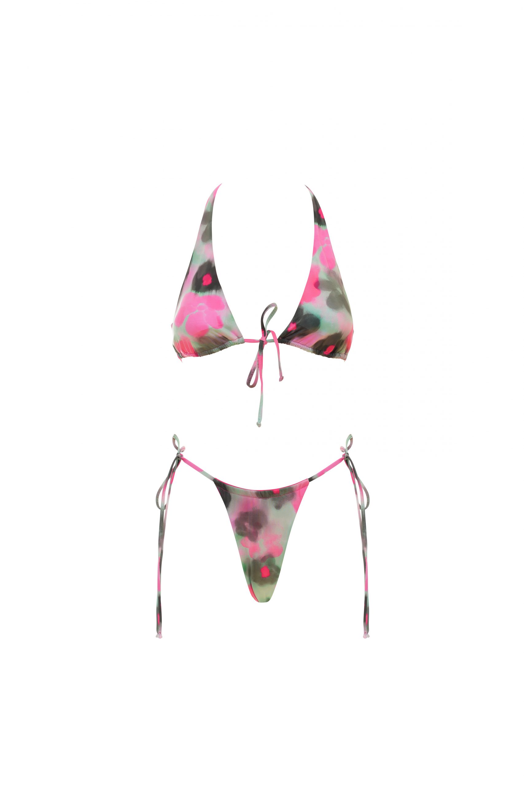 Benedetta è il bikini super trendy che combina un top a triangolo con allacciatura sul davanti, spalline larghe fisse e coppa estraibile, con uno slip a brasiliana dalla vestibilità minimal. Lo slip è dotato di laccetti annodabili sui fianchi, che ti permettono di personalizzarlo in base alla tua silhouette. In fantasia fiore, per un tocco romantico e fresco. Realizzato in microfibra, un tessuto leggero e resistente per costumi da bagno confortevoli.