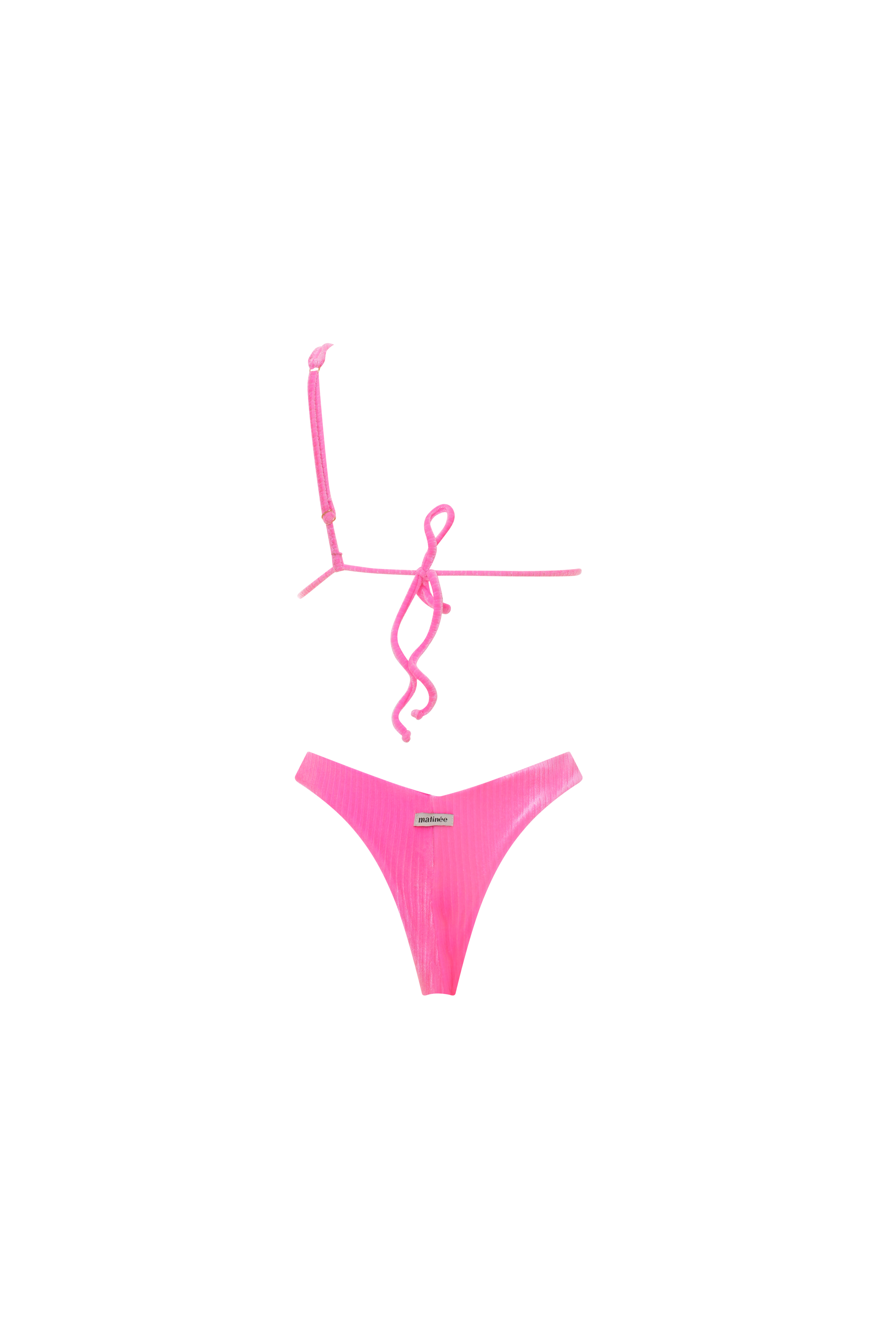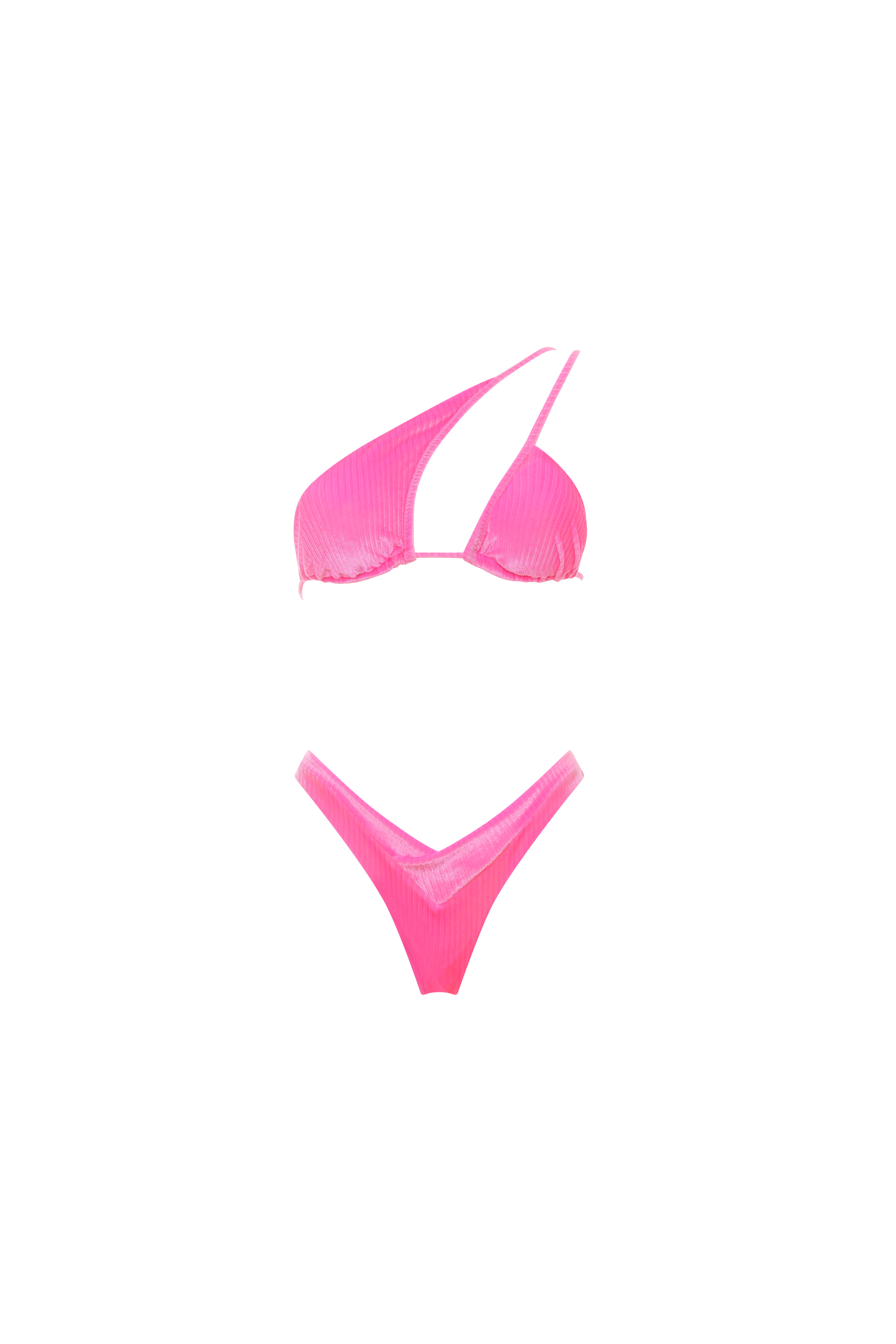 Bianca è il bikini dal design intramontabile. Il suo top a triangolo monospalla è particolare e femminile. È dotato di coppe estraibili e laccetti regolabili. Il suo slip a vita bassa ha uno scollo a V sul davanti e una sgambatura a brasiliana.