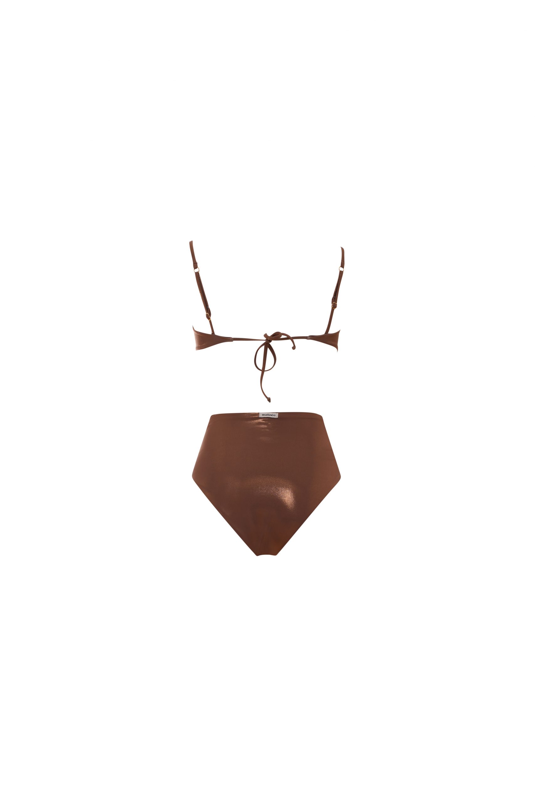 Realizzato in lamina, un materiale riflettente che aggiunge un tocco glamour ai costumi da bagno.