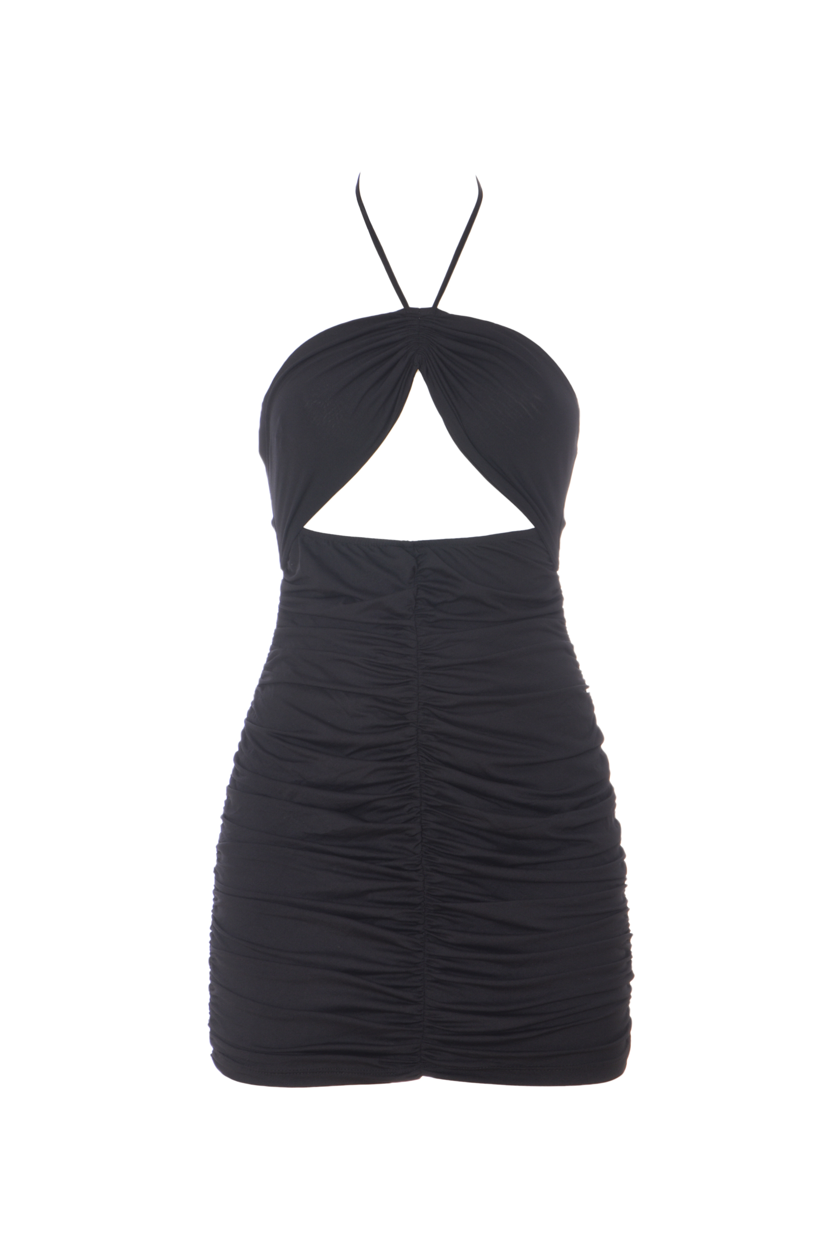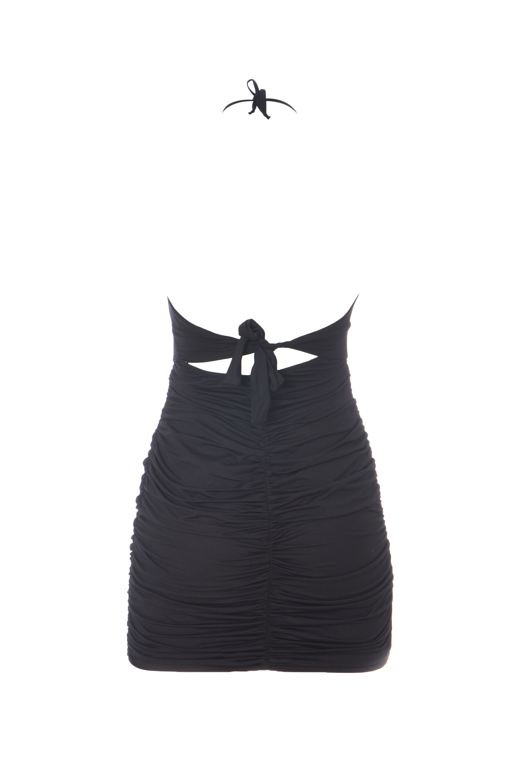 Giada è un mini abito con drappeggio. La sua chiusura con laccetto annodabile rende la sua vestibilità comoda e personalizzabile. Con cut-out frontale per essere glamour e alla moda.