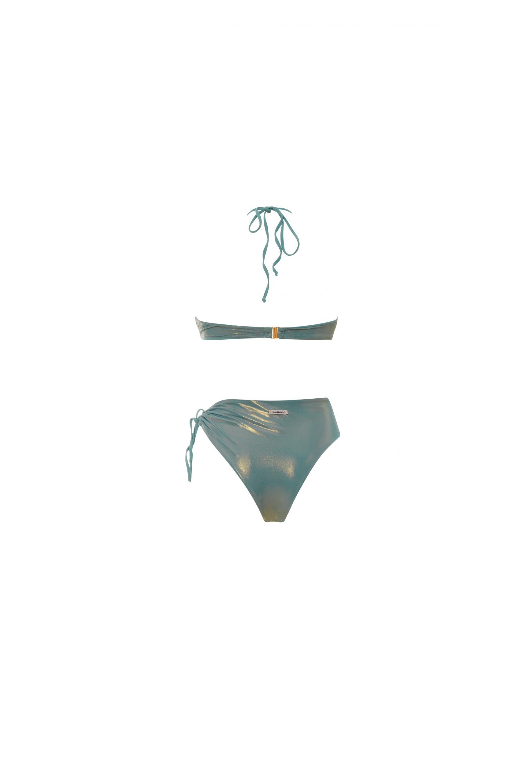 Carla è un bikini particolare e cool. Il suo top ha un’allacciatura con laccetti dietro il collo. La chiusura sul retro è a clip e la scollatura è interamente personalizzabile, grazie ai laccetti annodabili a piacimento. Il suo slip è a vita alta ed è dotato di chiusura laterale con laccetti. In tinta unita, nella colorazione tiffany. Realizzato in tulle e microfibra, leggero e resistente per garantirti eleganza e comfort.