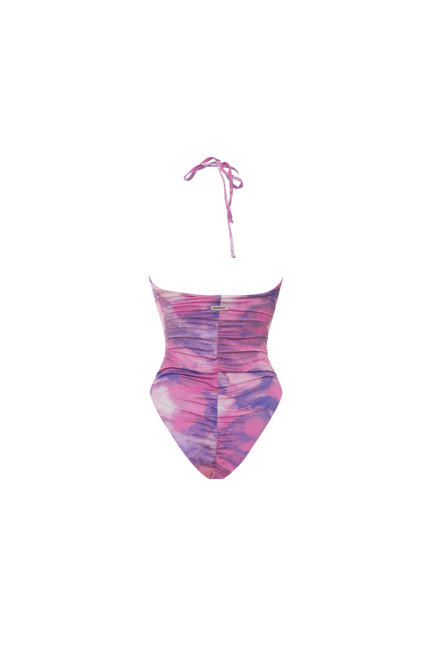 Clio è l’intero super glamour dalla linea elegante e particolare. Ha una scollatura profonda sulla parte frontale con cut out e allacciatura con laccetti annodabili dietro al collo. Le coppe sono estraibili, ideali per adattare la vestibilità al tuo stile. La scollatura sulla schiena è dritta mentre la sgambatura è a brasiliana. In fantasia loose di colore viola. Realizzato in microfibra, un tessuto leggero e resistente, perfetto per costumi da bagno confortevoli.
