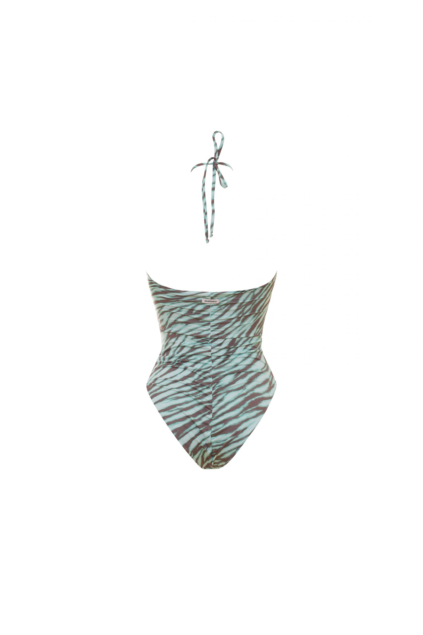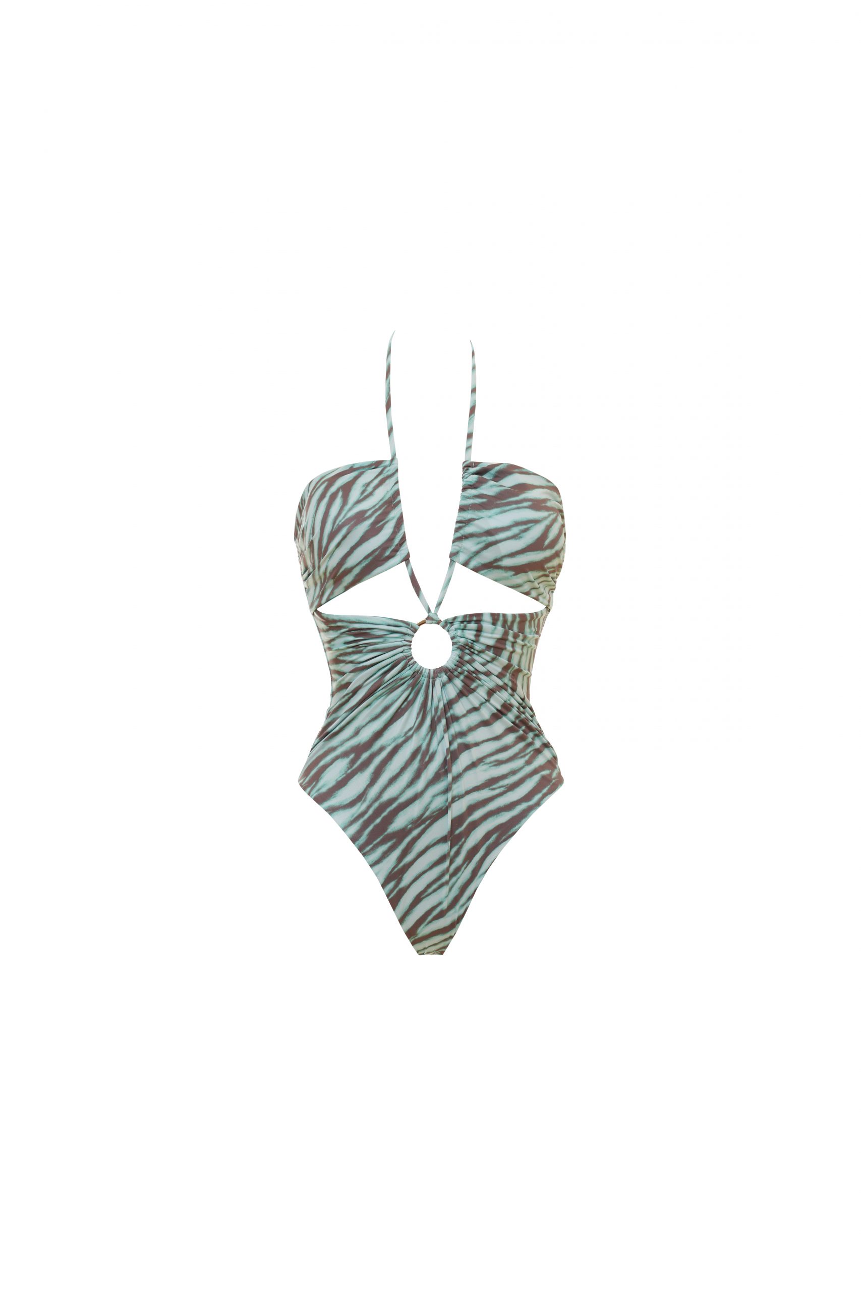 Clio è l’intero super glamour dalla linea elegante e particolare. Ha una scollatura profonda sulla parte frontale con cut out e allacciatura con laccetti annodabili dietro al collo. Le coppe sono estraibili, ideali per adattare la vestibilità al tuo stile. La scollatura sulla schiena è dritta mentre la sgambatura è a brasiliana. In fantasia zebrato di colore verde, per look selvaggi e trendy.