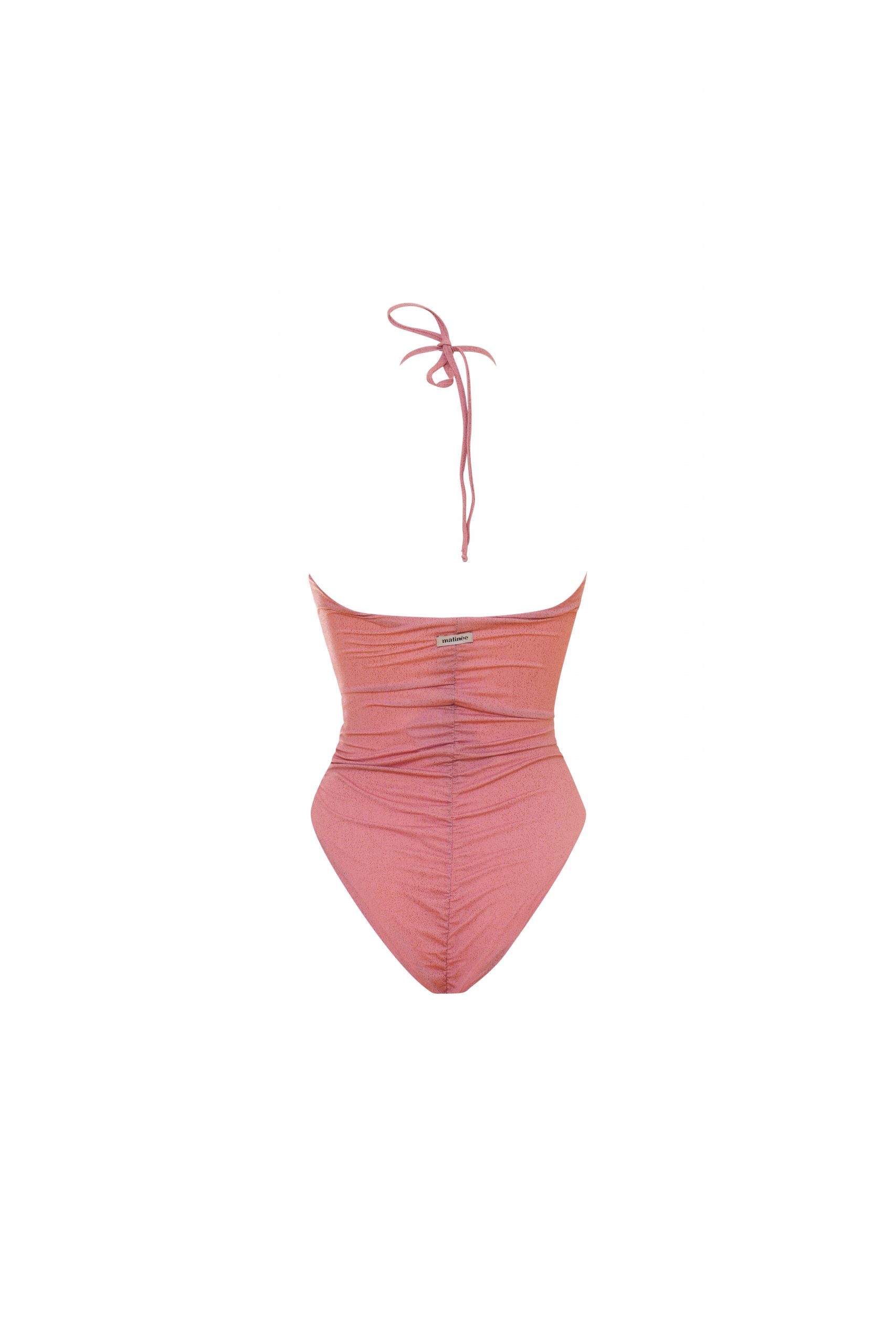 Clio è l’intero super glamour dalla linea elegante e particolare. Ha una scollatura profonda sulla parte frontale con cut out e allacciatura con laccetti annodabili dietro al collo. Le coppe sono estraibili, ideali per adattare la vestibilità al tuo stile. La scollatura sulla schiena è dritta mentre la sgambatura è a brasiliana.