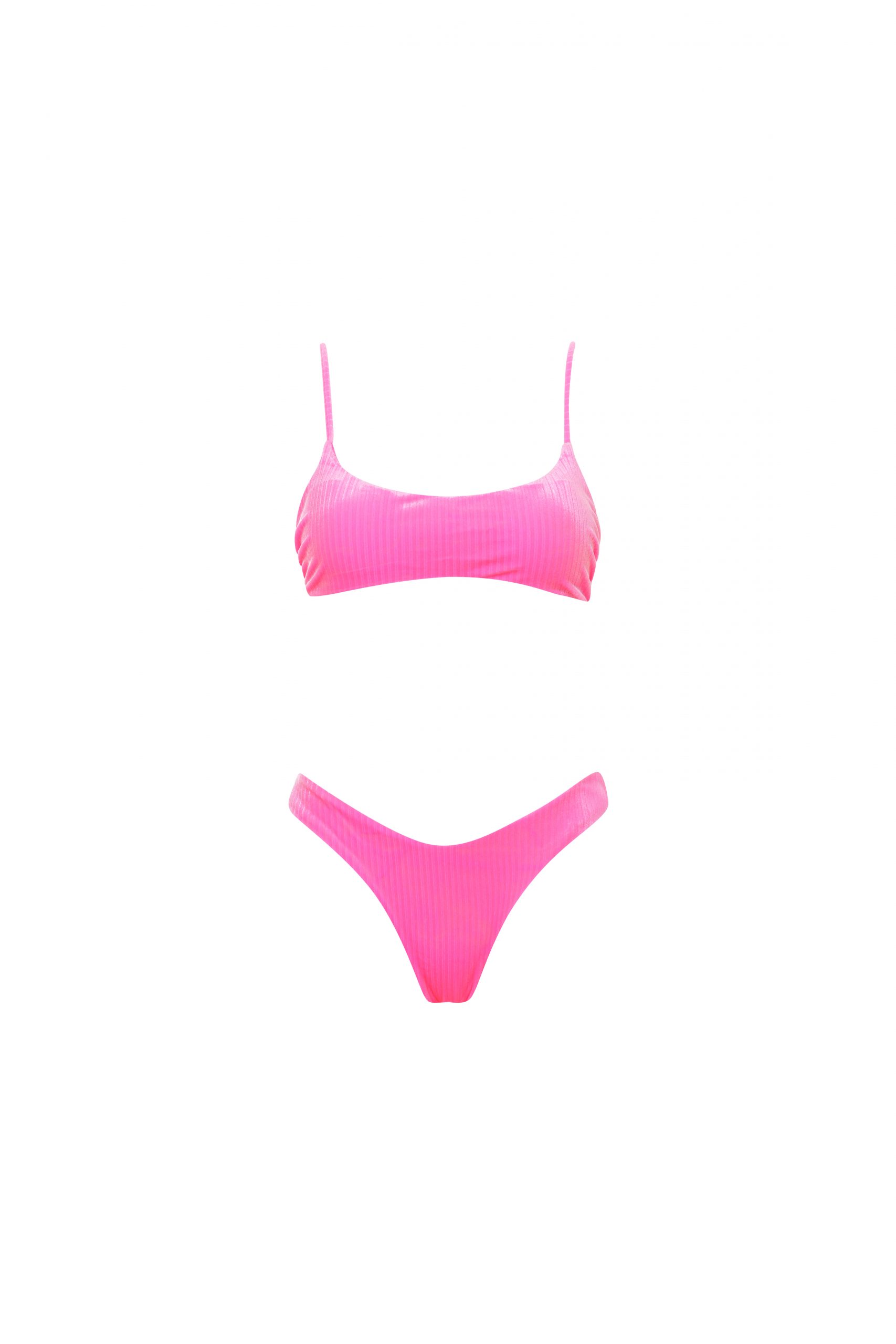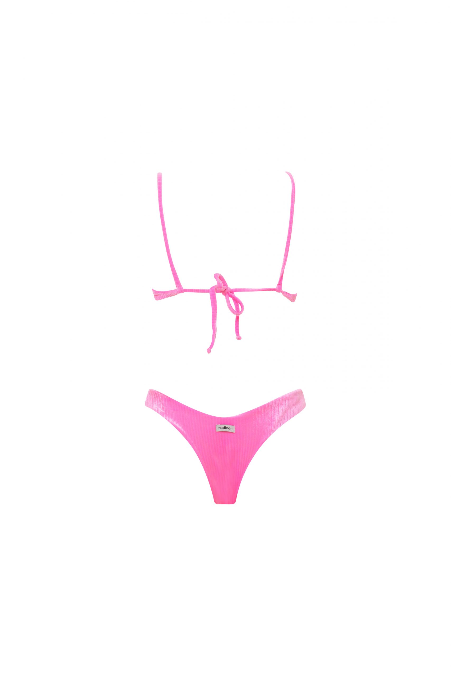 Dora è il bikini che combina un top a fascia con imbottitura estraibile, e uno slip a brasiliana con taglio a V. La chiusura del top è regolabile, grazie ai laccetti annodabili, per garantirti il massimo della personalizzazione.