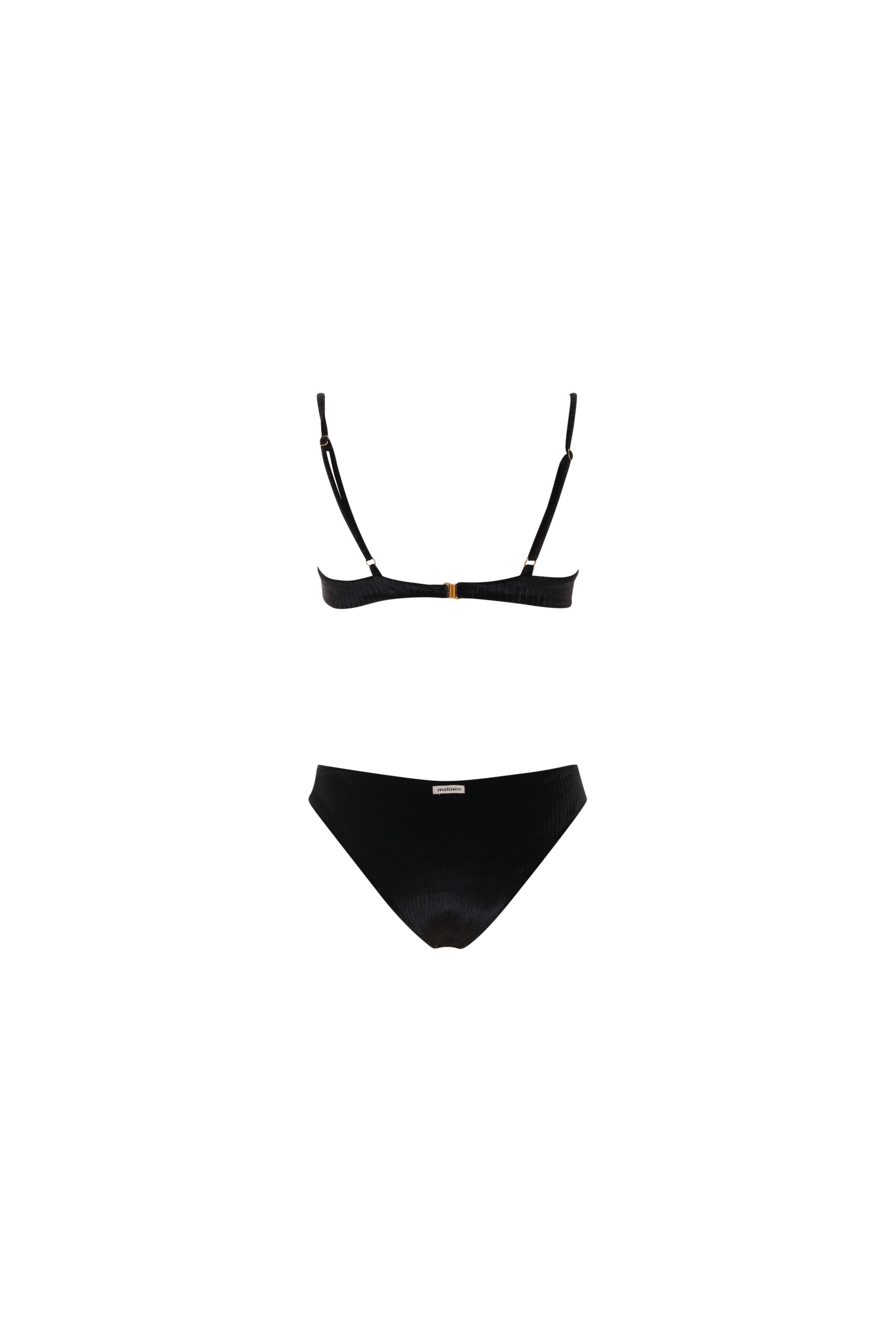 Elettra è il bikini classico ed elegante, con un top con ferretto senza imbottitura e uno slip basic con vestibilità regolare. Il top ha le bretelle regolabili e la chiusura sul retro a clip, semplice e sicura.