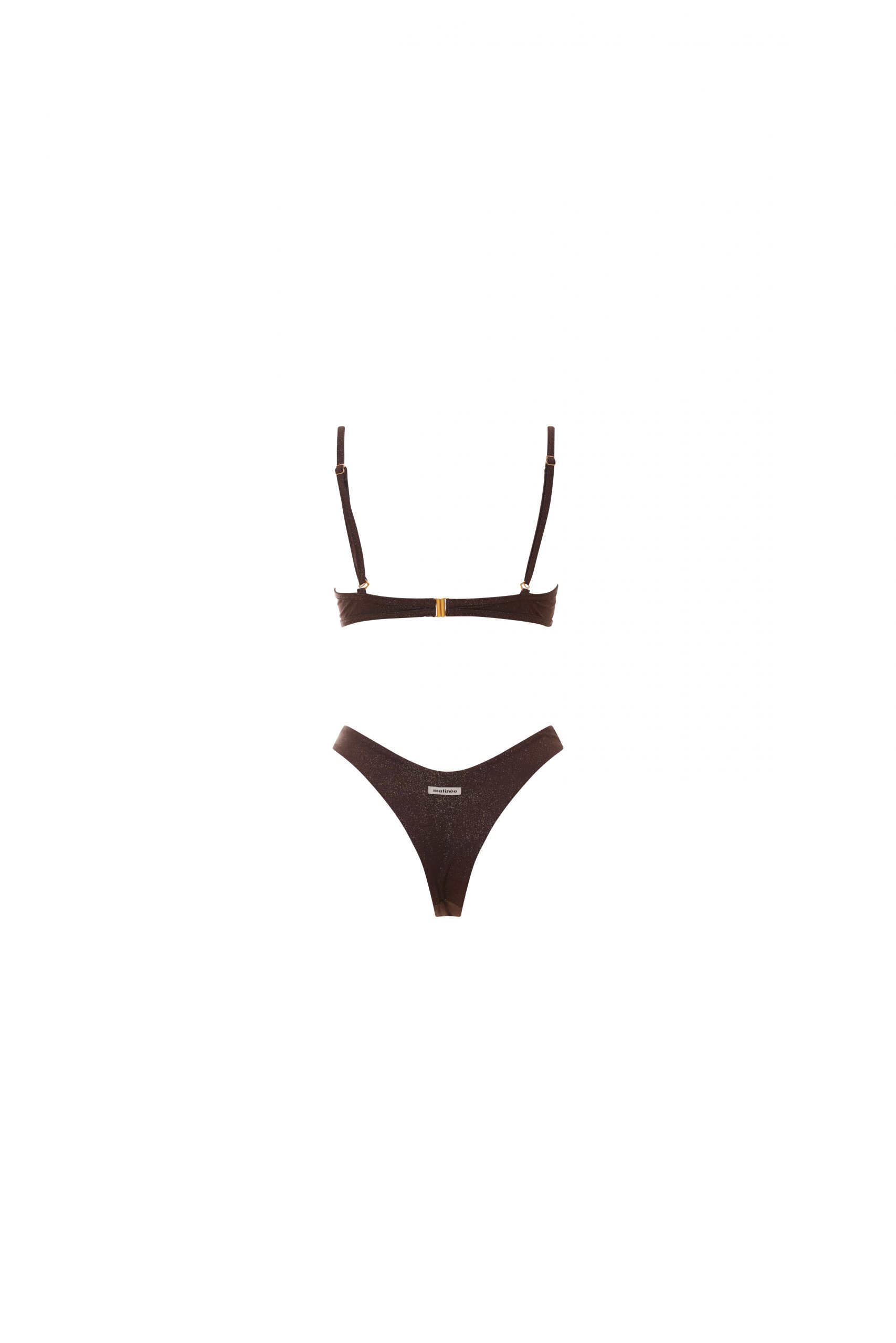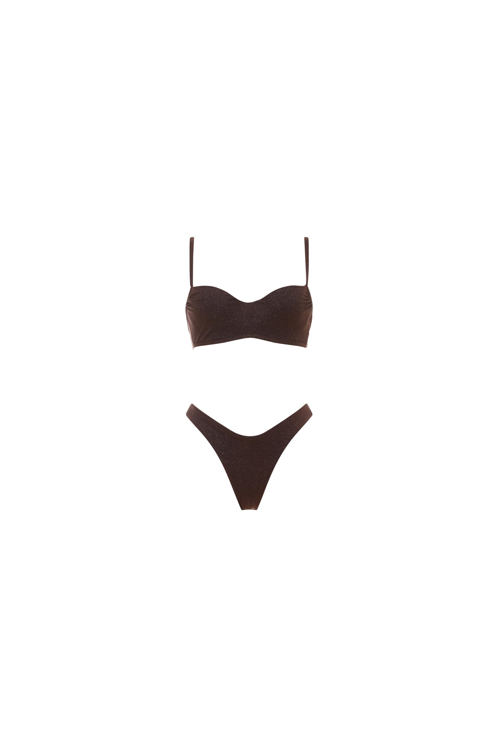 Gioia è il bikini femminile ed elegante, perfetto per le tue giornate estive. Il suo top con coppa fissa, bretelle regolabili e chiusura a clip ti dona stabilità e sicurezza personalizzabili in base alle tue esigenze. Lo slip ha una vestibilità regolare ed una sgambatura a brasiliana. In tinta unita, nella colorazione cacao. Realizzato in microfibra kristal, brillantezza e raffinatezza in un tessuto unico per look glamour.