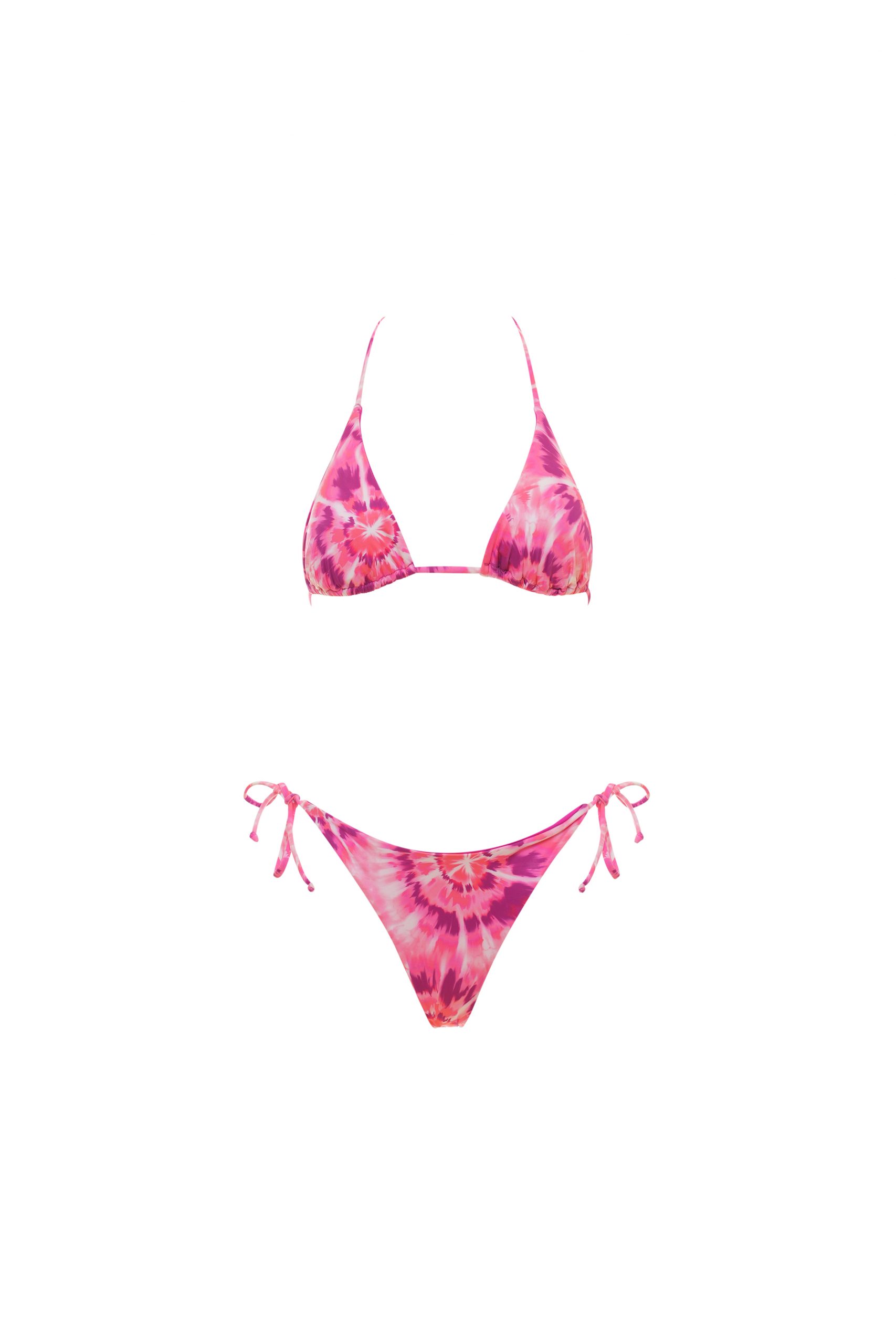 In fantasia tie dye di colore rosa.