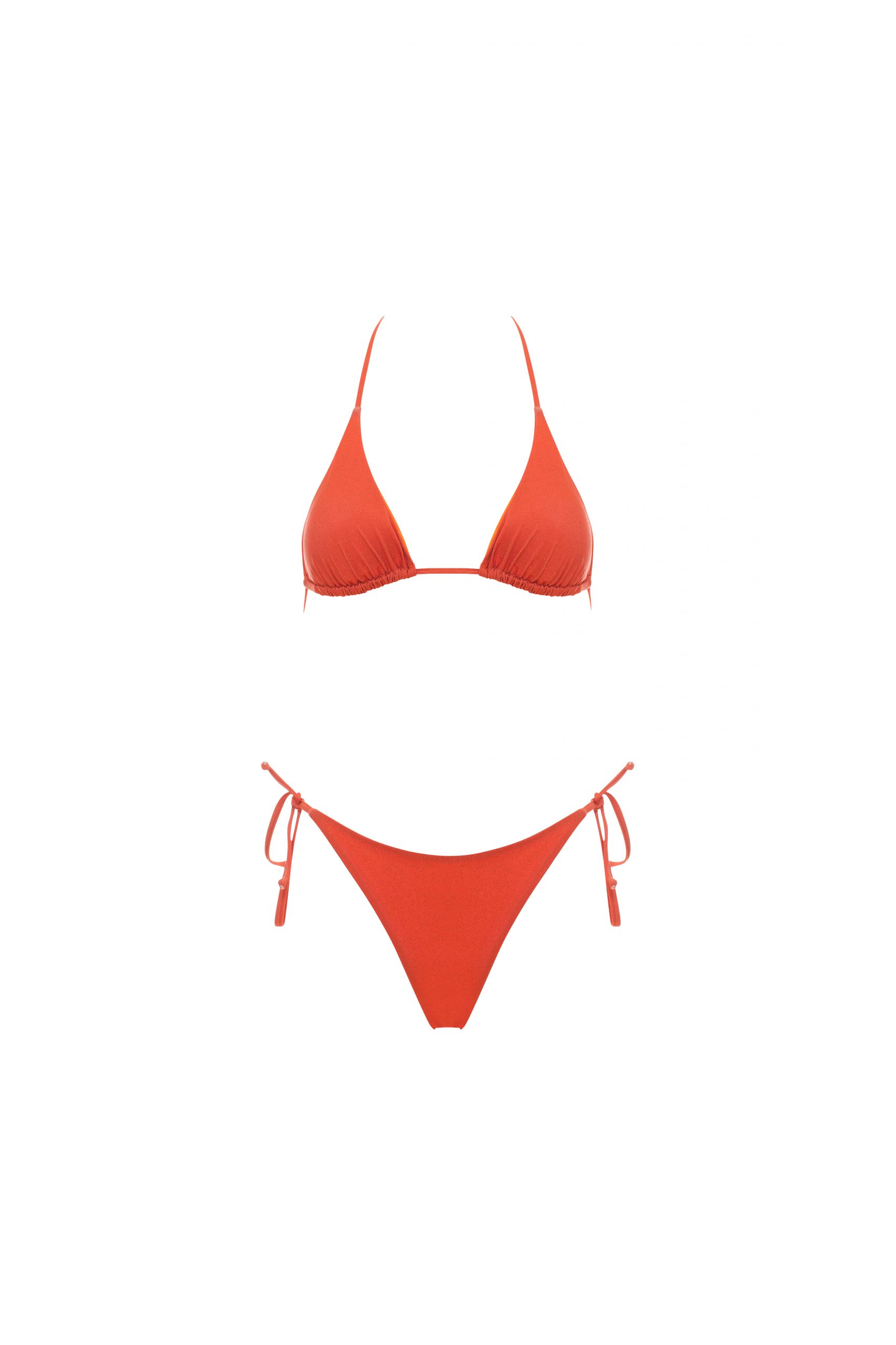 Kate è il bikini must-have dell’estate. Combina un top a triangolo con laccetti regolabili e coppe estraibili e uno slip, anch’esso con laccetti regolabili laterali e una sgambatura a brasiliana. Realizzato in microfibra kristal, brillantezza e raffinatezza in un tessuto unico per look glamour. In tinta unita, nella colorazione arancio.