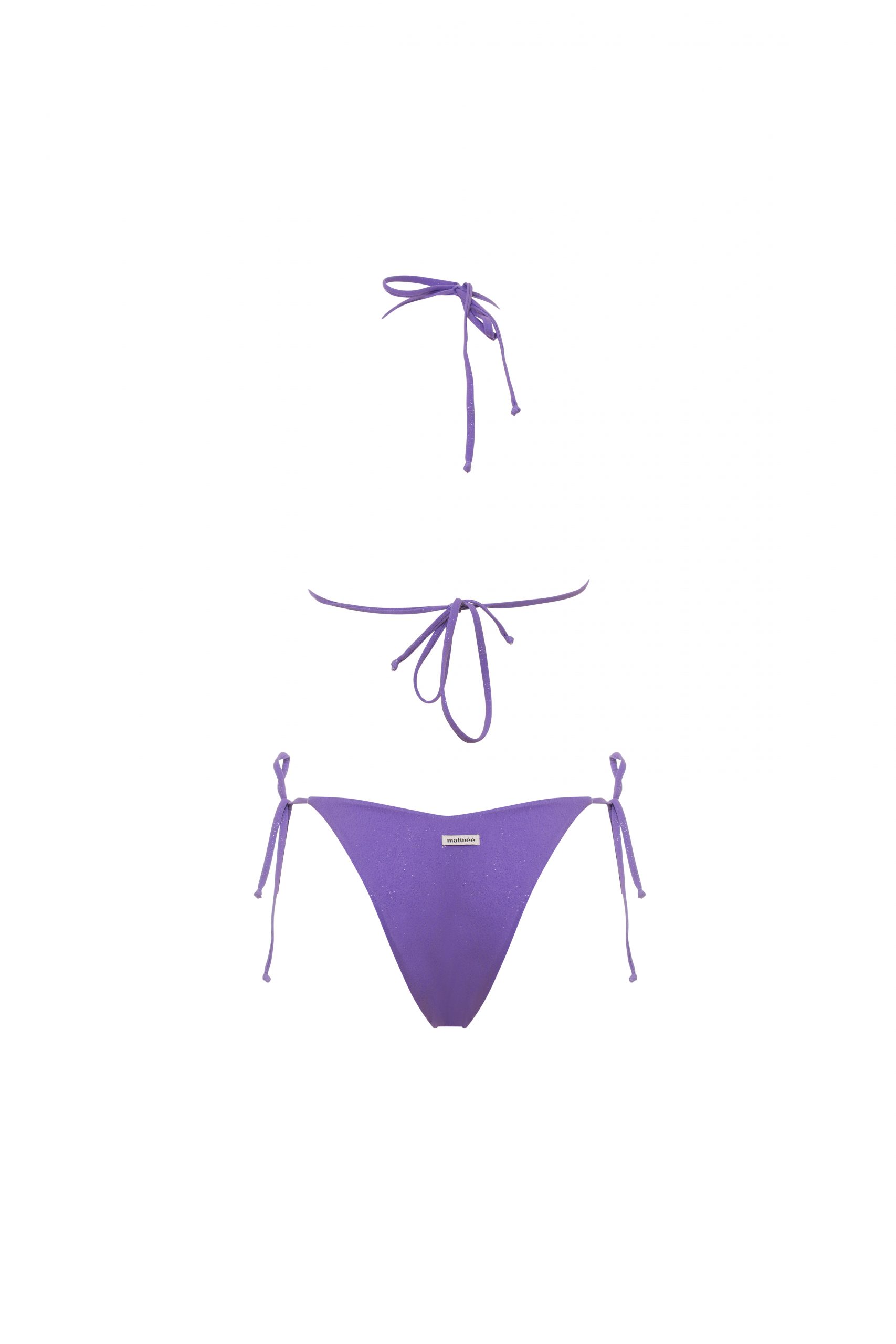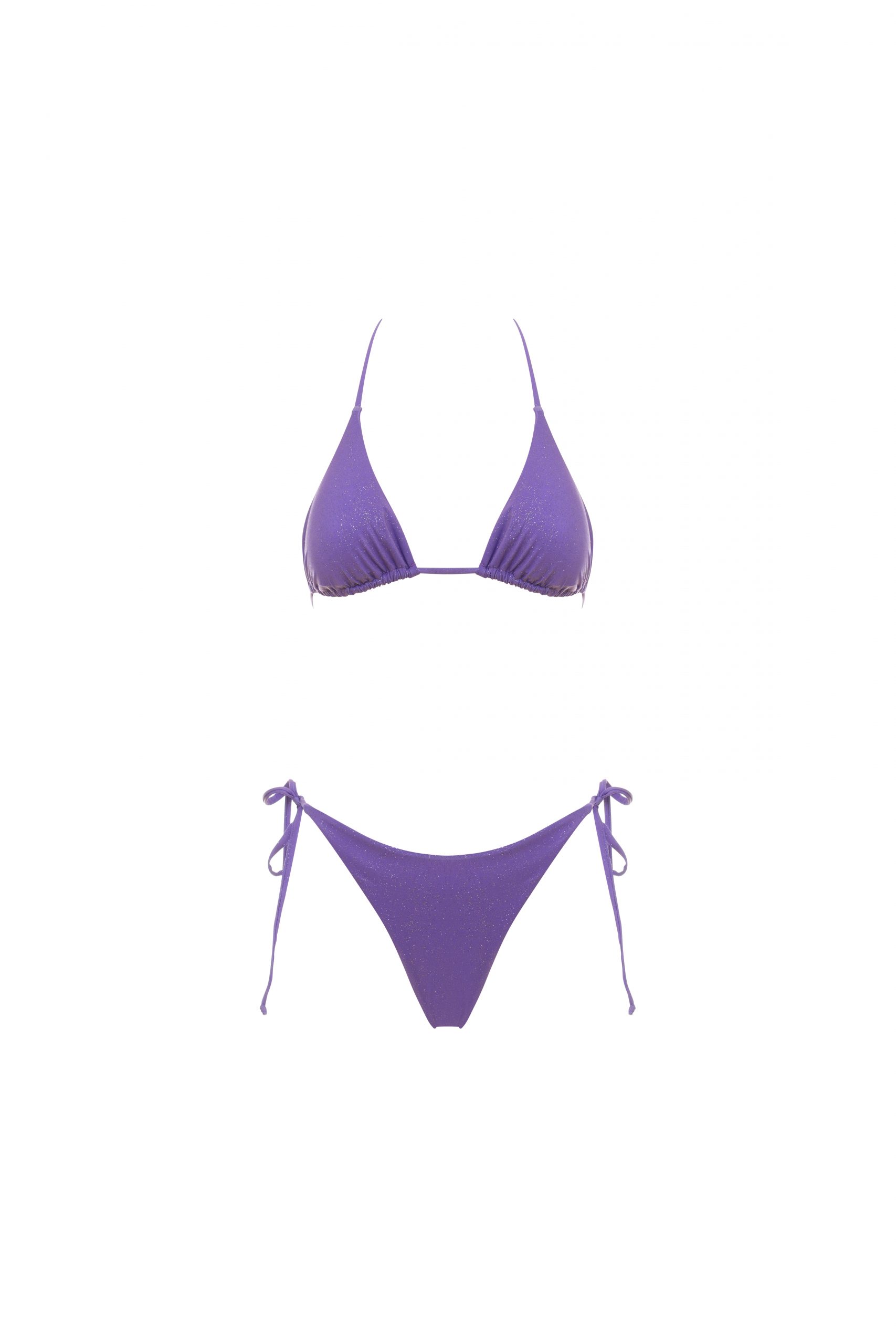 Kate è il bikini must-have dell’estate. Combina un top a triangolo con laccetti regolabili e coppe estraibili e uno slip, anch’esso con laccetti regolabili laterali e una sgambatura a brasiliana. Realizzato in microfibra kristal, brillantezza e raffinatezza in un tessuto unico per look glamour. In tinta unita di colore viola.