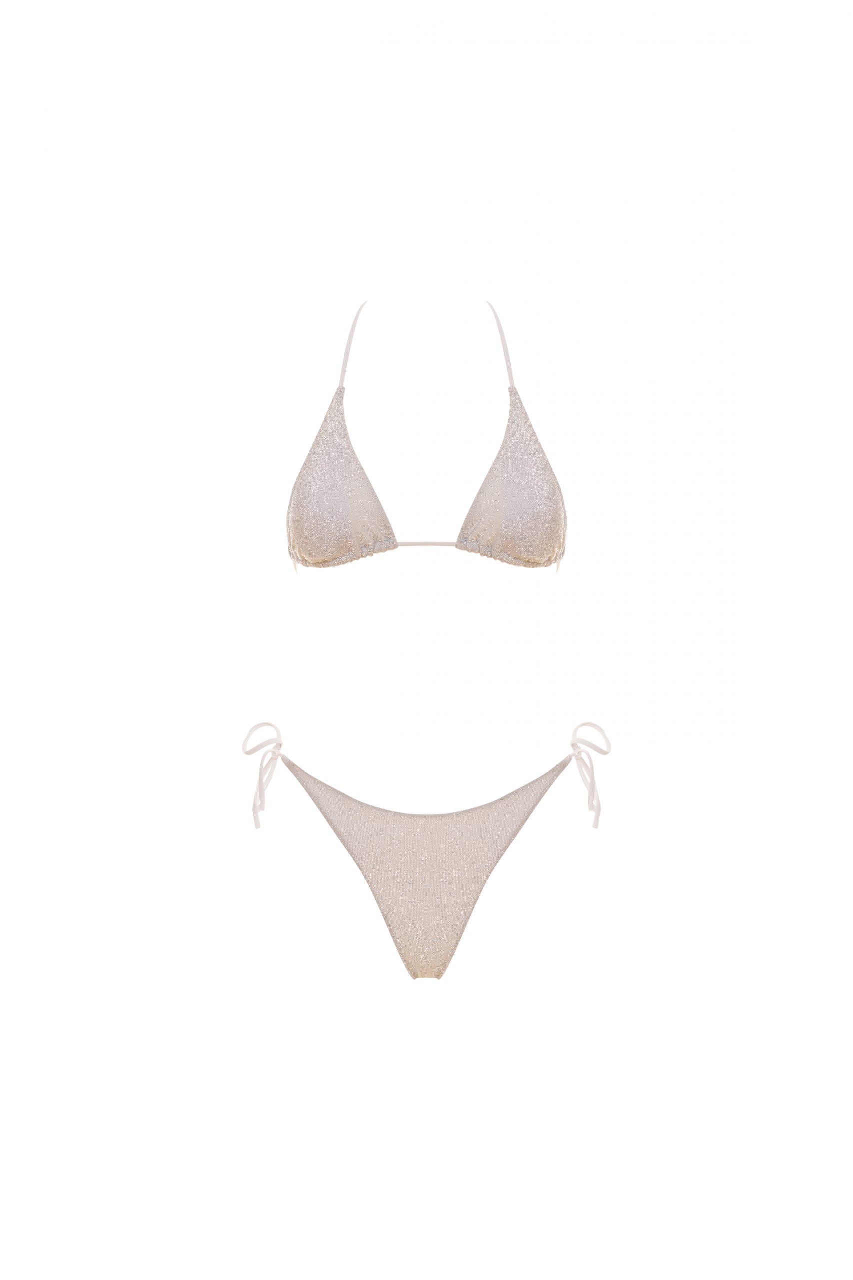 Kate è il bikini must-have dell’estate. Combina un top a triangolo con laccetti regolabili e coppe estraibili e uno slip, anch’esso con laccetti regolabili laterali e una sgambatura a brasiliana.