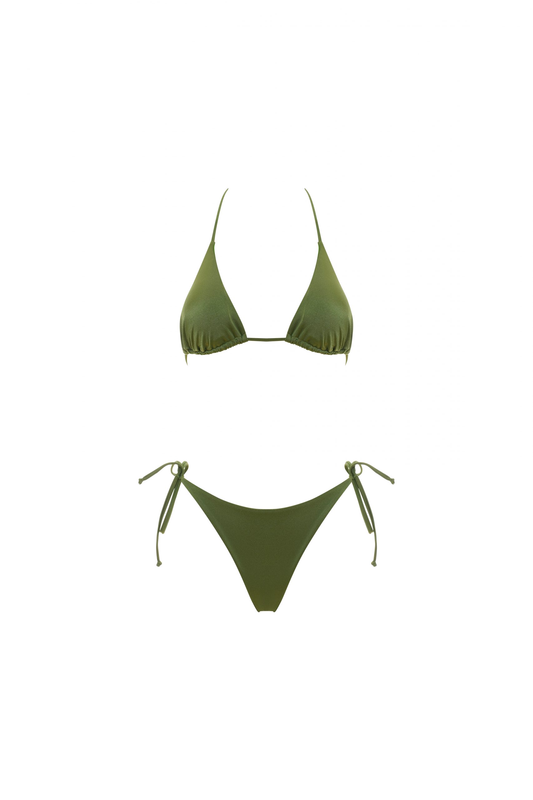 Kate è il bikini must-have dell’estate. Combina un top a triangolo con laccetti regolabili e coppe estraibili e uno slip, anch’esso con laccetti regolabili laterali e una sgambatura a brasiliana. Realizzato in lycra lucida, un materiale elastico e brillante che esalta le forme con eleganza. In tinta unita, nella colorazione rosmarino.