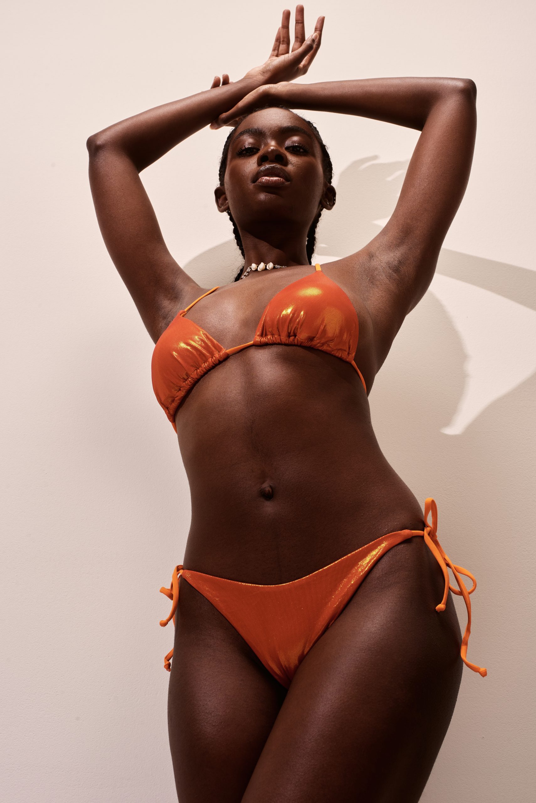 Kate è il bikini must-have dell’estate. Combina un top a triangolo con laccetti regolabili e coppe estraibili e uno slip, anch’esso con laccetti regolabili laterali e una sgambatura a brasiliana.