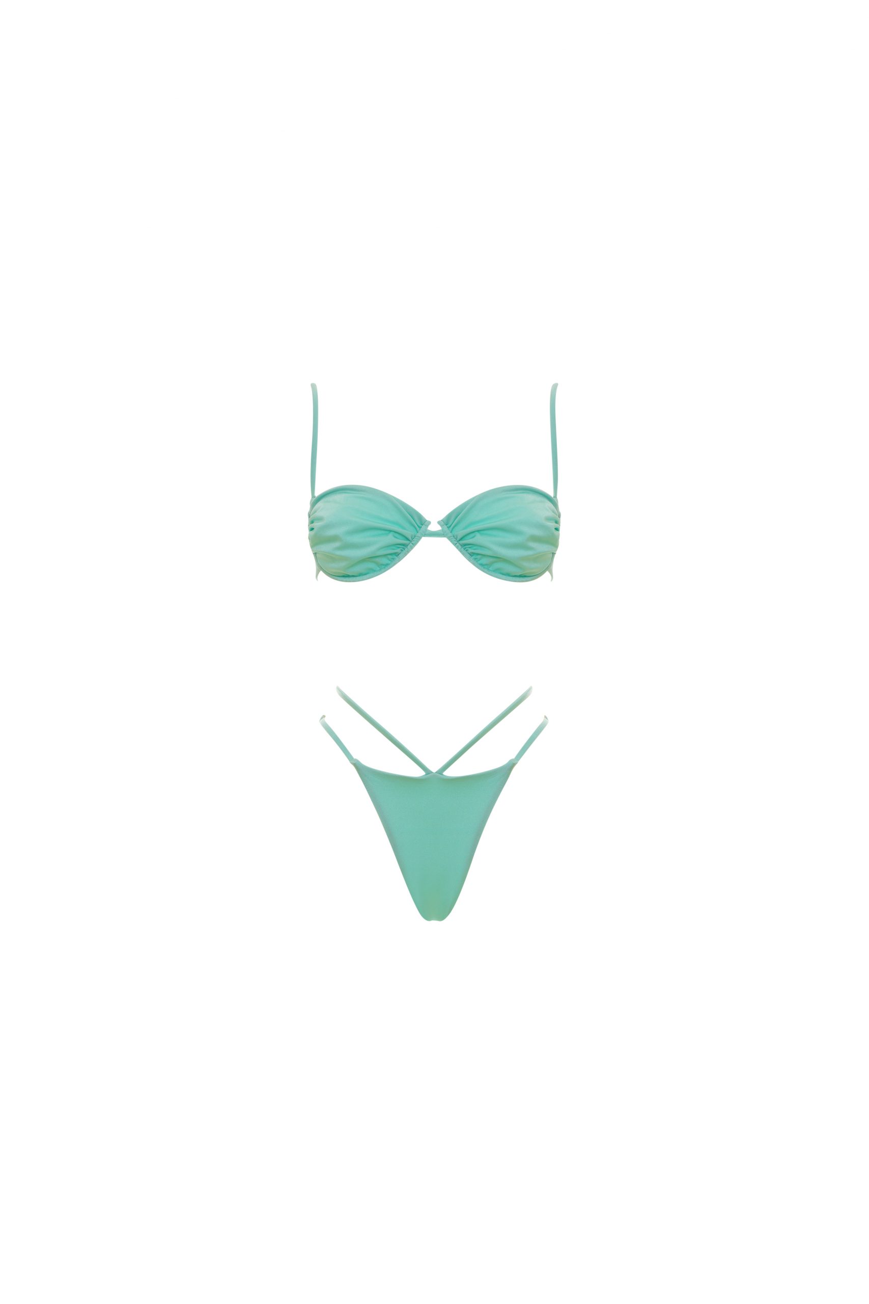 Marina è il bikini bestseller dell’estate, per uno stile impeccabile e luminoso. Combina un top dalla vestibilità slim, con ferretto, senza imbottitura e bretelle regolabili e removibili, che ti permettono di adattarlo alle tue necessità. E uno slip sgambato con arricciatura sul retro e doppio laccetto. La chiusura del top è con clip, sicura e comoda. In tinta unita di colore verde acqua. Realizzato in lycra lucida, per un look elegante e luminoso.