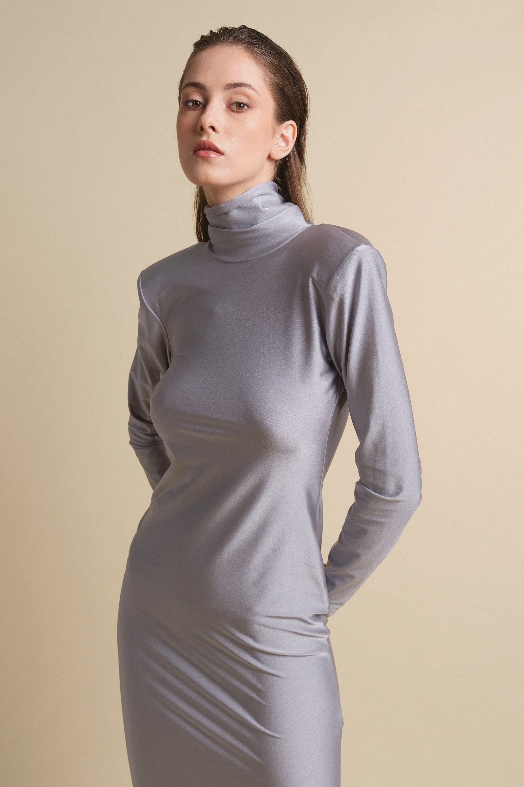 abito lupetto con scollatura profonda sulla schiena. Lavare a mano a freddo.
