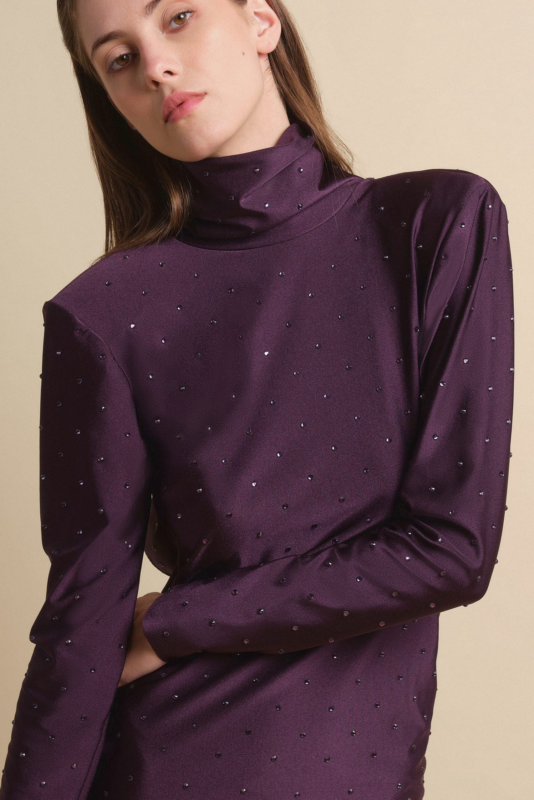 Abito lupetto con strass e scollatura profonda, perfetto per un look audace e sofisticato. Realizzato con dettagli scintillanti che catturano l’attenzione, si consiglia il lavaggio a mano a freddo per preservare la sua brillantezza e qualità.