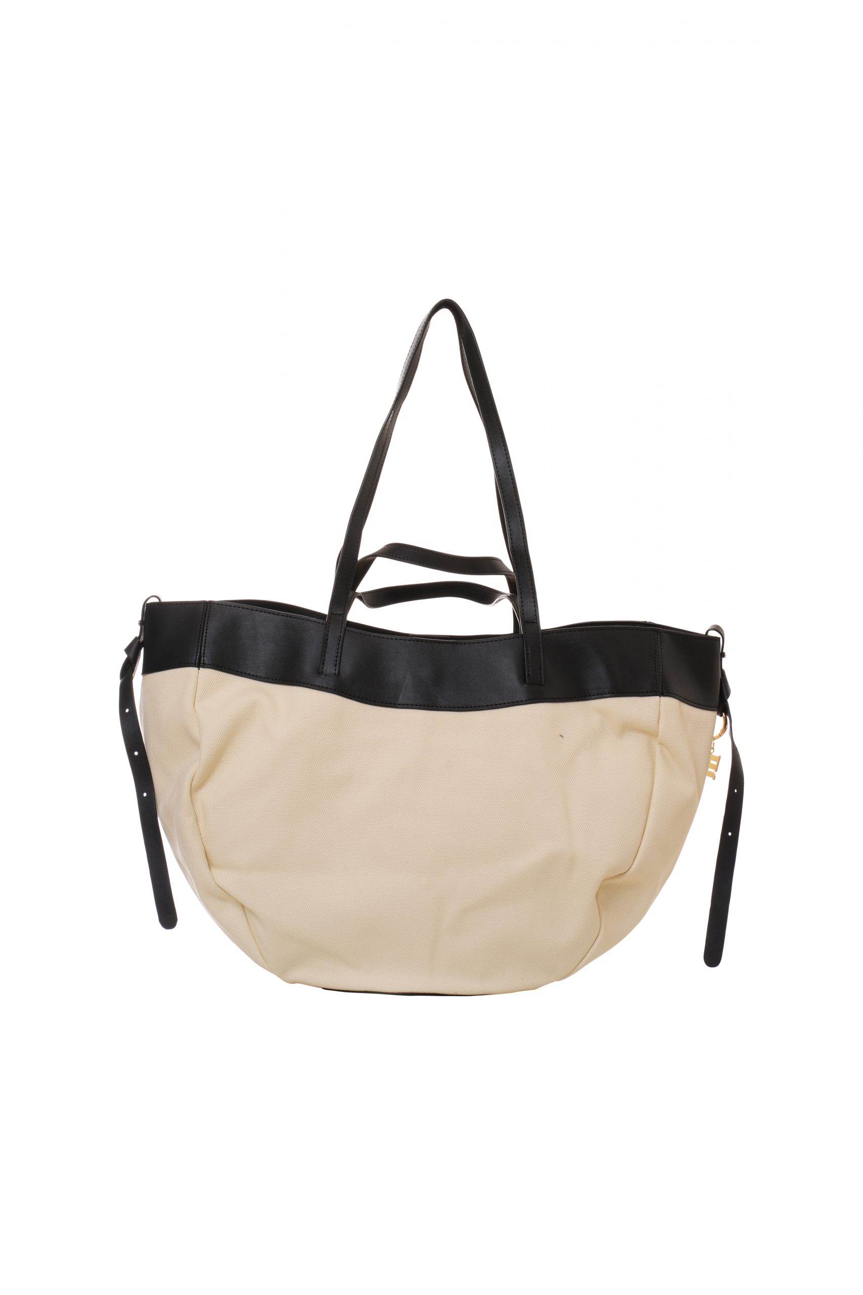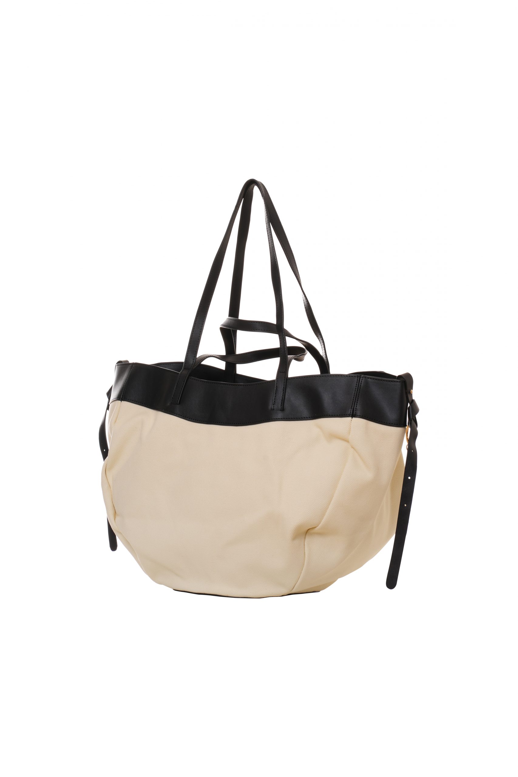 Roma è la borsa shopper capiente e comoda. I manici lunghi e resistenti ti permettono di portarla a mano o a spalla. In tinta unita di colore bianco con dettagli a contrasto di colore nero.