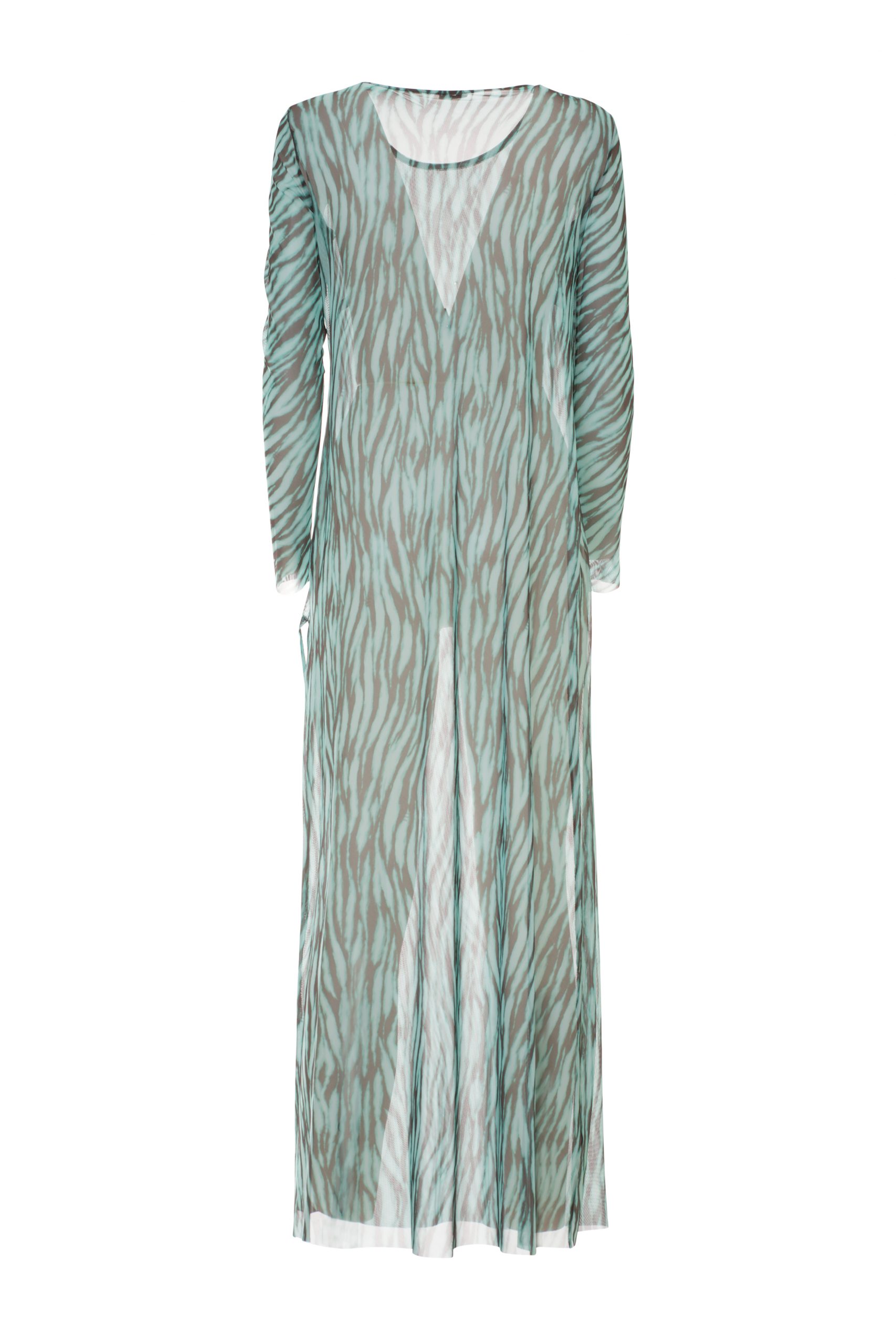 Selene è l’abito con manica lunga e trasparenze, perfetto per creare un look glamour per le tue giornate estive, al mare, in piscina o in barca. Realizzato in tulle, un tessuto leggero e trasparente, per dettagli eleganti e femminili. In fantasia zebrato di colore verde.
