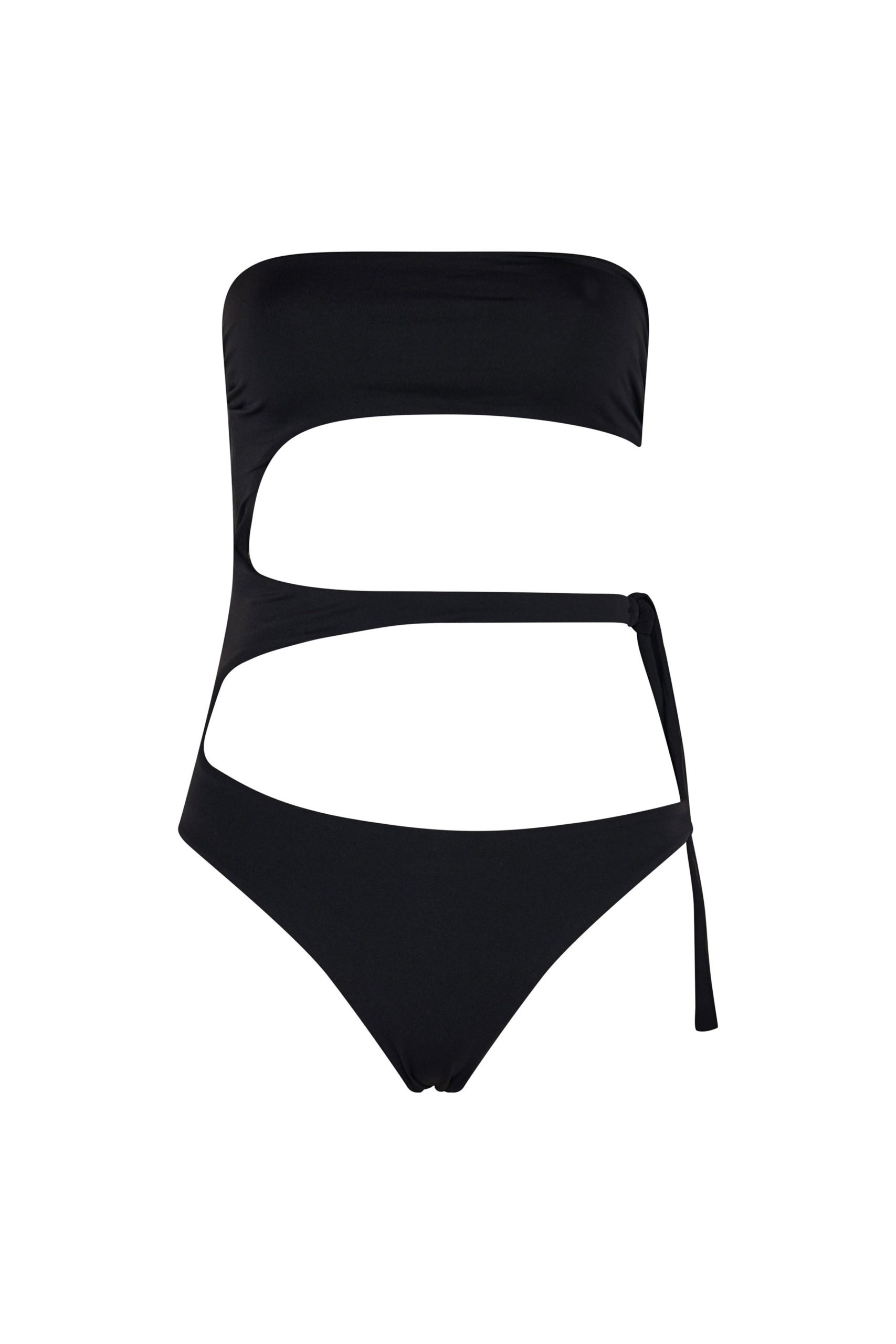 Vivienne è un costume intero a fascia caratterizzato da dettagli cut-out e un elegante nodo laterale. Questo modello valorizza la silhouette con un effetto sensuale e contemporaneo. Il retro ha una sgambatura a brasiliana.
