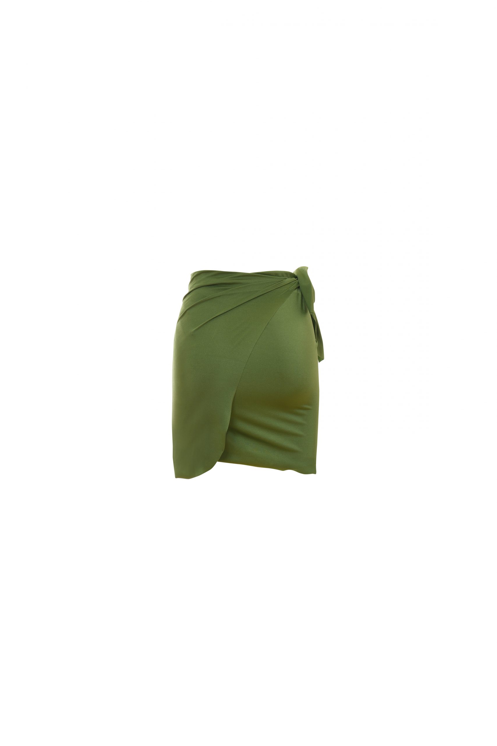 Annette is the short sarong That completes your beach look. The closure is fully customizable. Made of glossy lycra, for an elegant and bright look. In solid color, in the rosemary coloring.