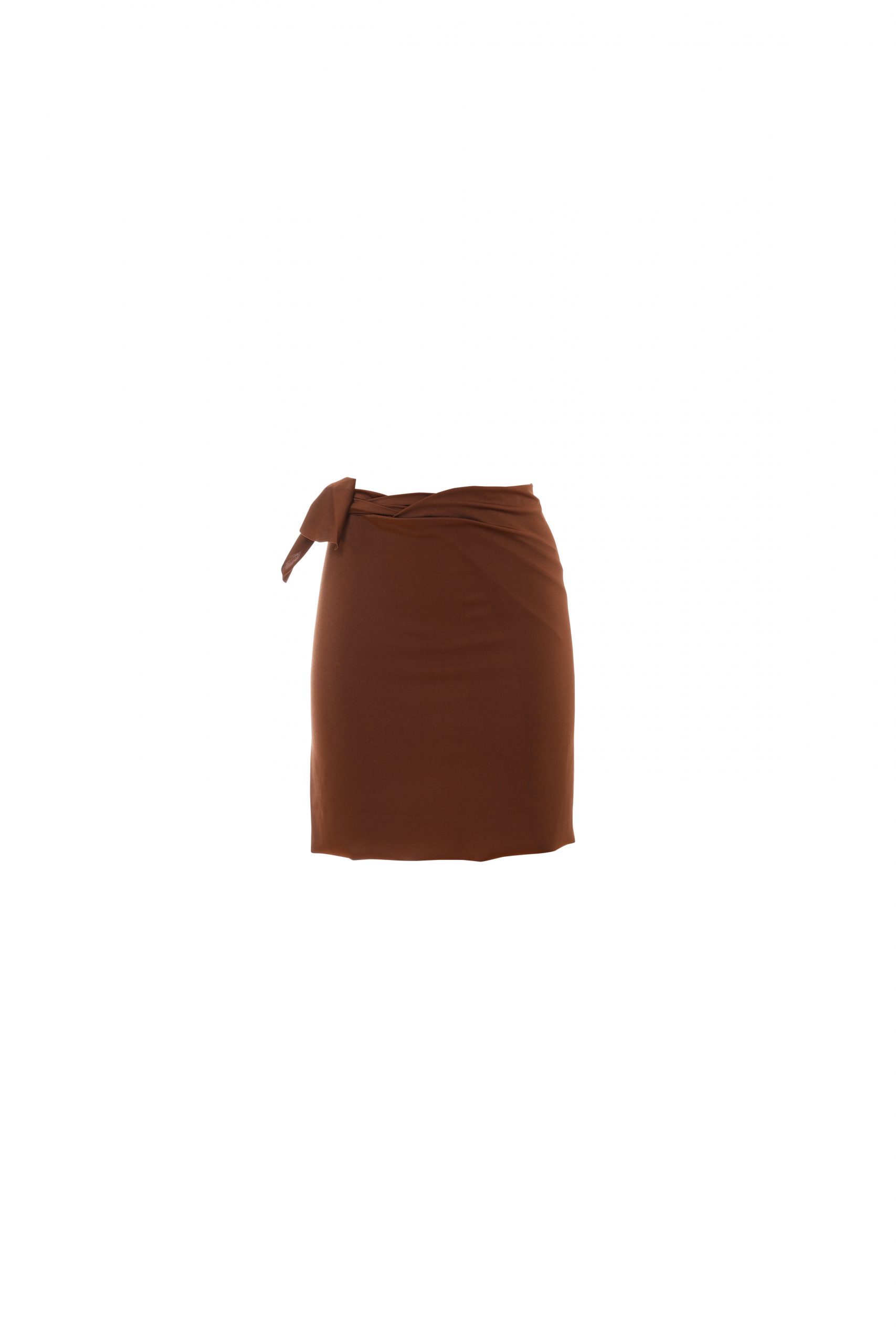 Annette is the short sarong That completes your beach look. The closure is fully customizable. Made of glossy lycra, for an elegant and bright look. In solid color, in rum coloration.