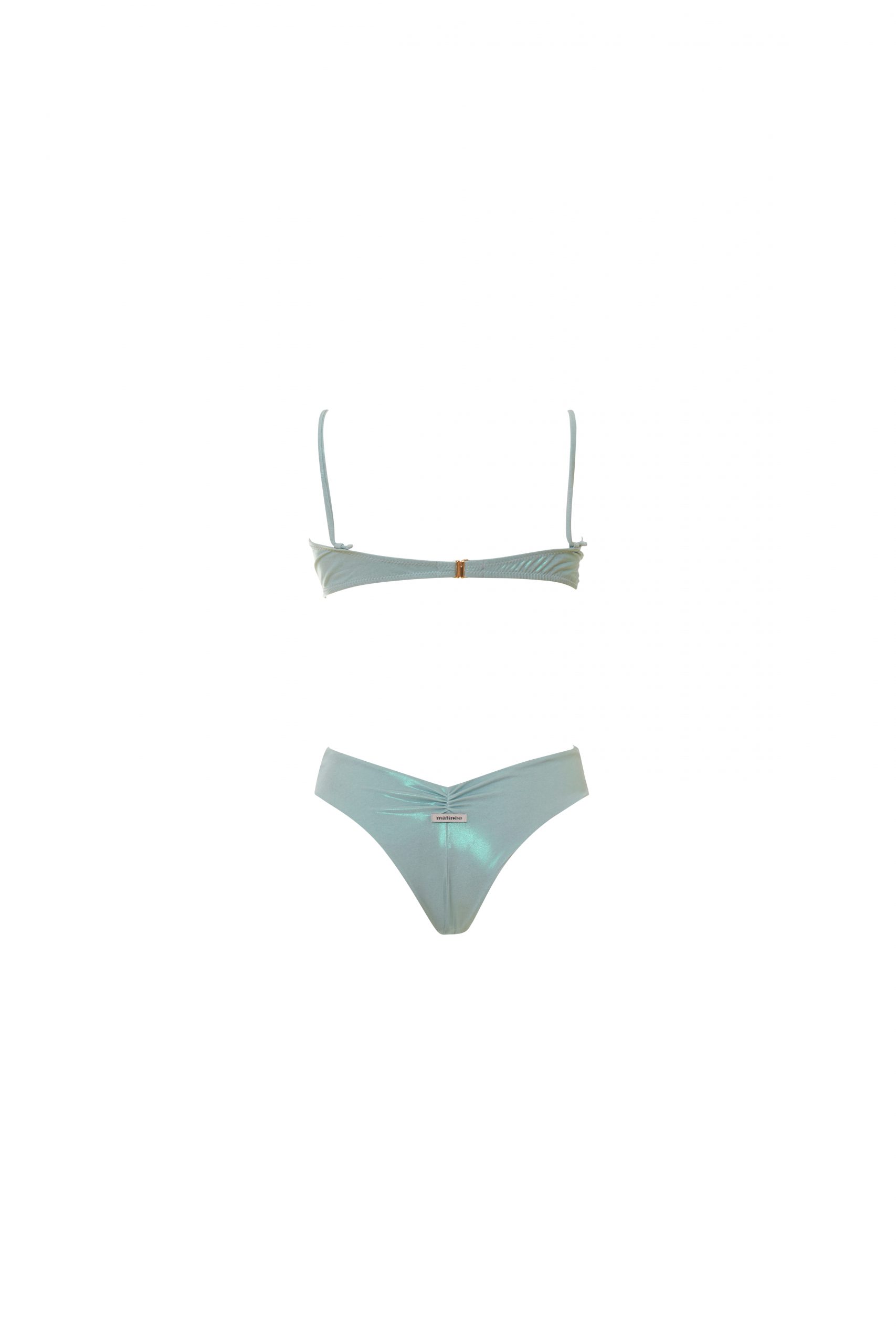 Made of lamina, a reflective material that adds a glamorous touch to swimwear.