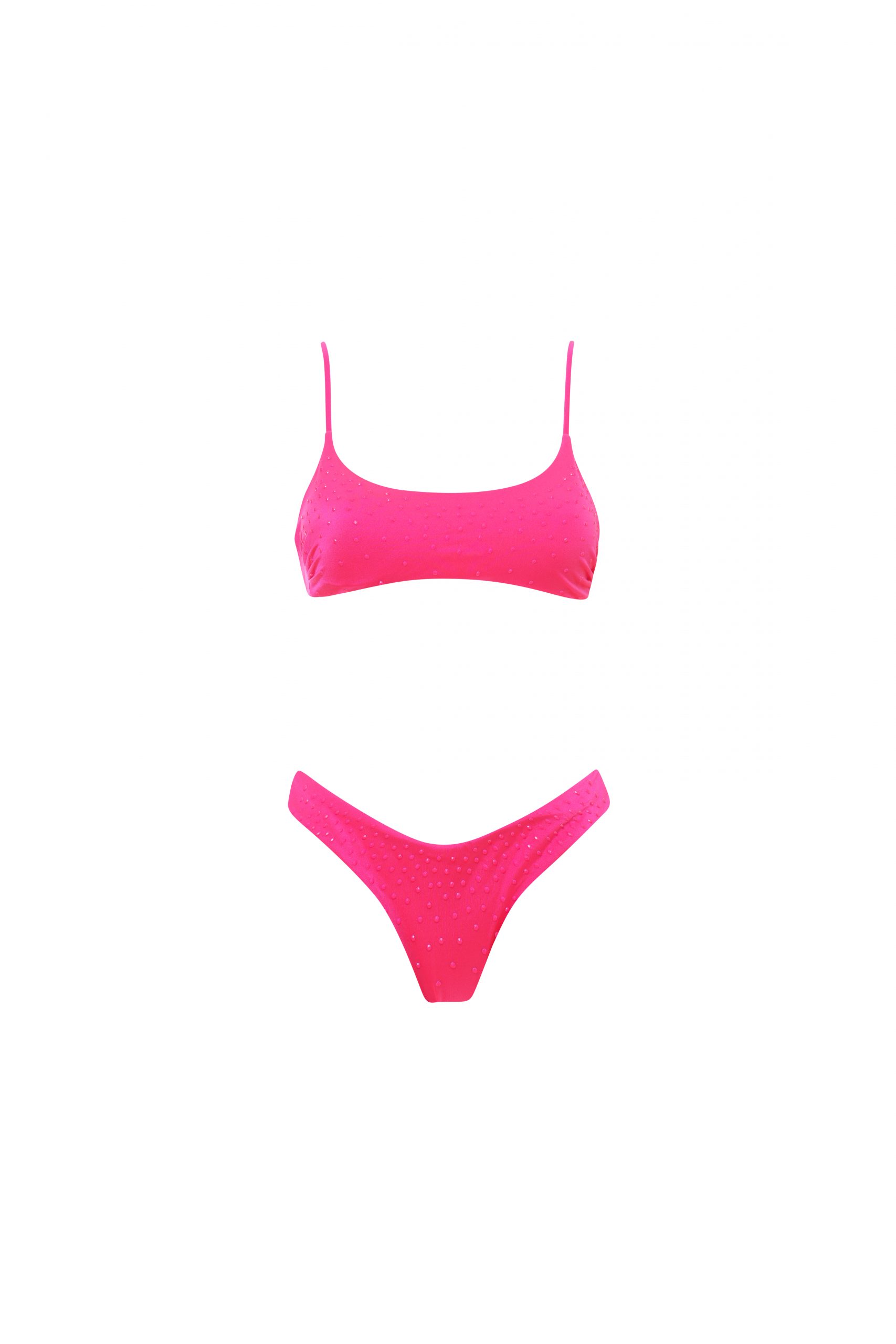 Dora is the bikini which combines a bandeau top with removable padding, and one Brazilian briefs V-cut. The top's closure is adjustable, thanks to knotted ties, to give you the ultimate in customization.