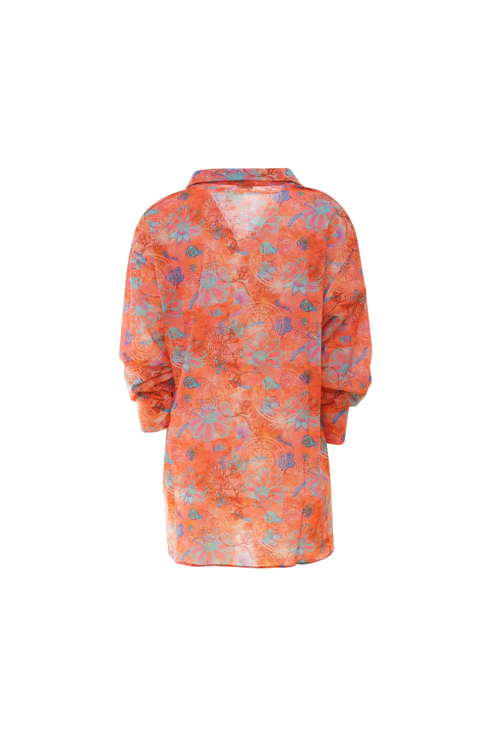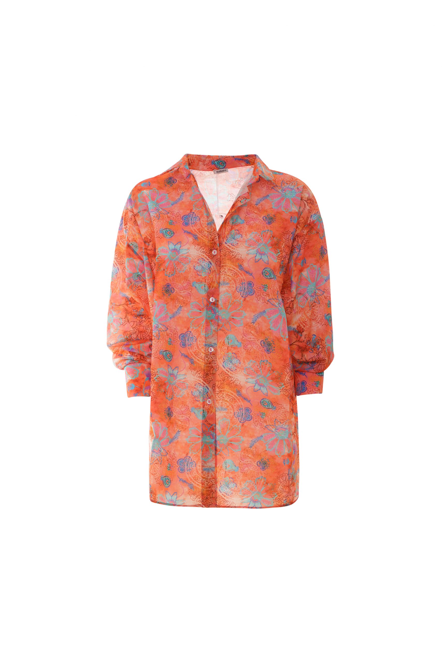 Evelyne is the shirt summer passepartout of the summer. Made of cotton, a lightweight material perfect for a cool and comfortable look. In fantasy peach-colored bohemia.