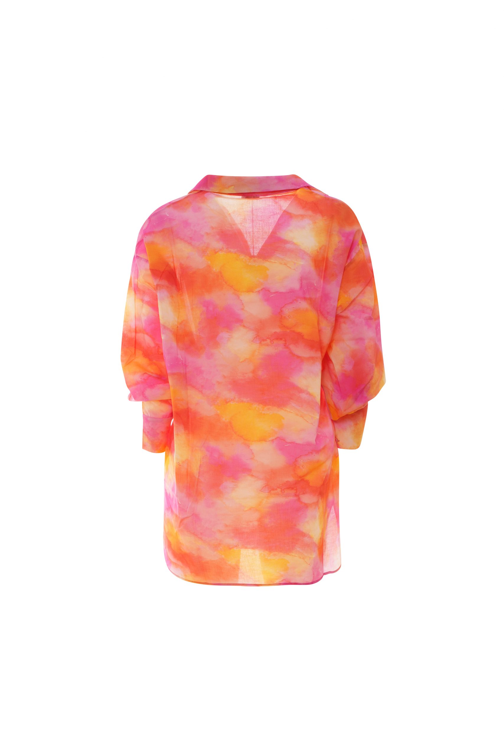 Evelyne is the shirt summer passepartout of the summer. Made of cotton, a lightweight material perfect for a cool and comfortable look. In fantasy loose orange color.
