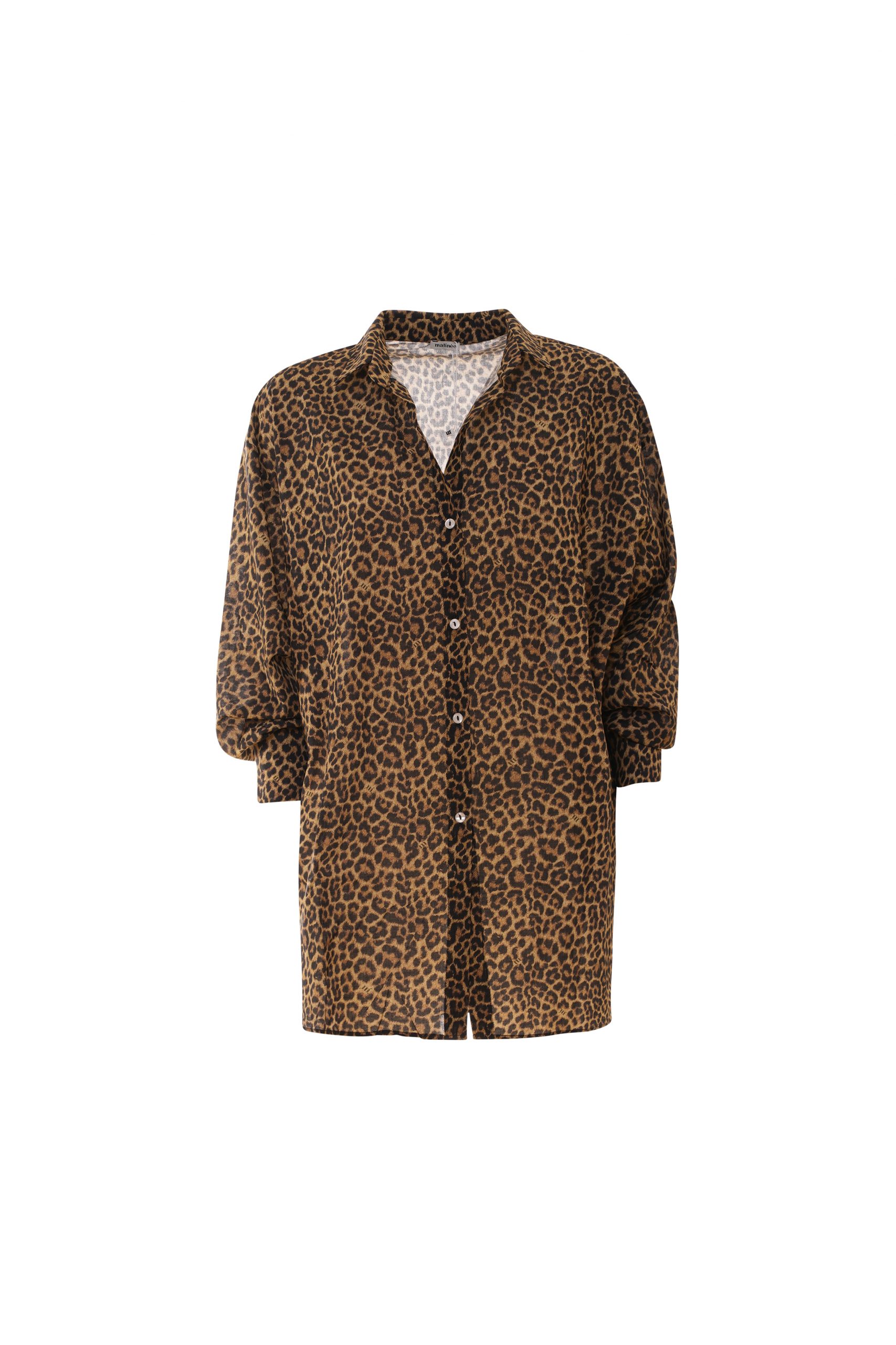 Evelyne is the shirt summer passepartout of the summer. Made of cotton, a lightweight material perfect for a cool and comfortable look. In fantasy spotted brown in color.