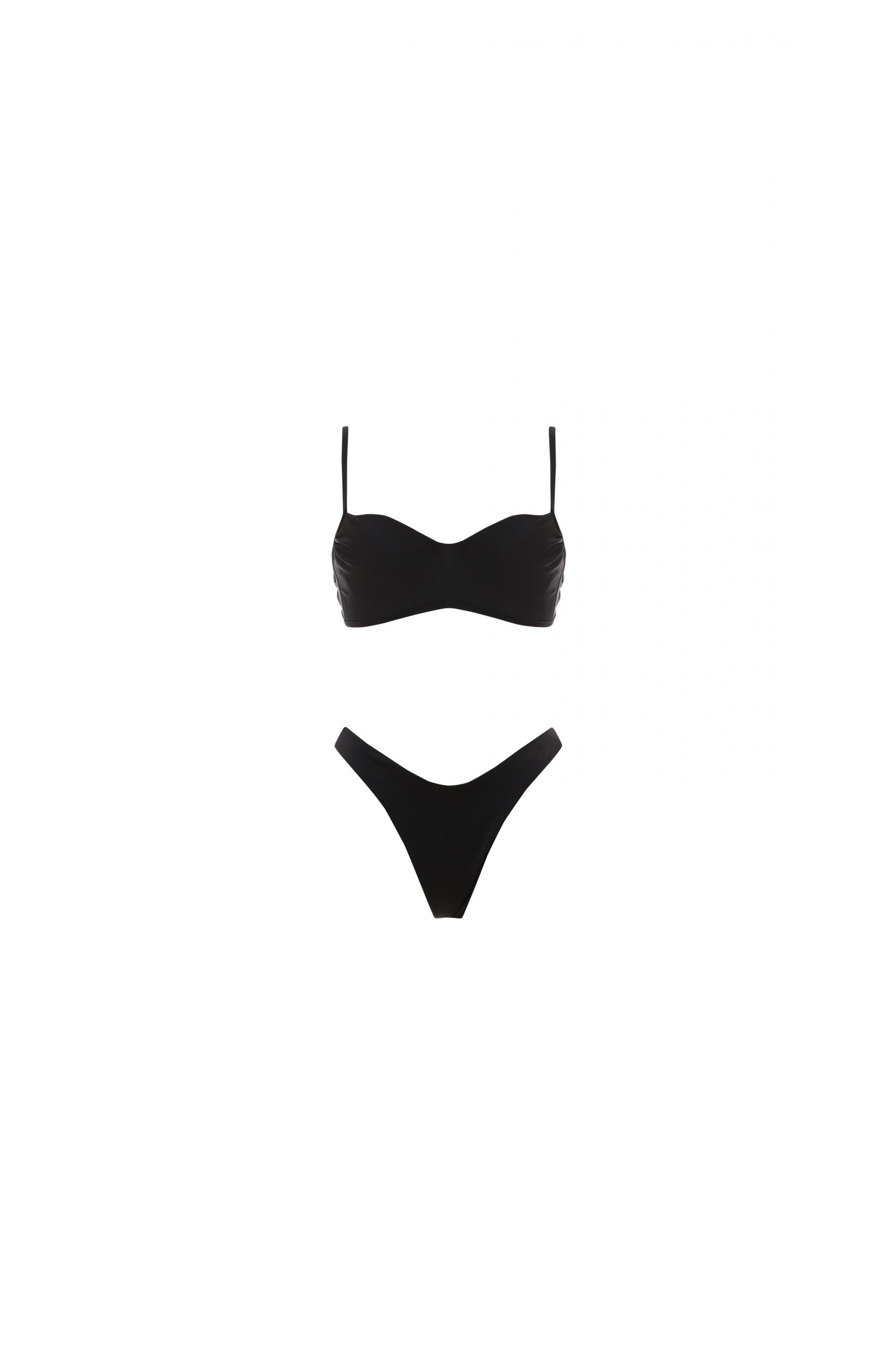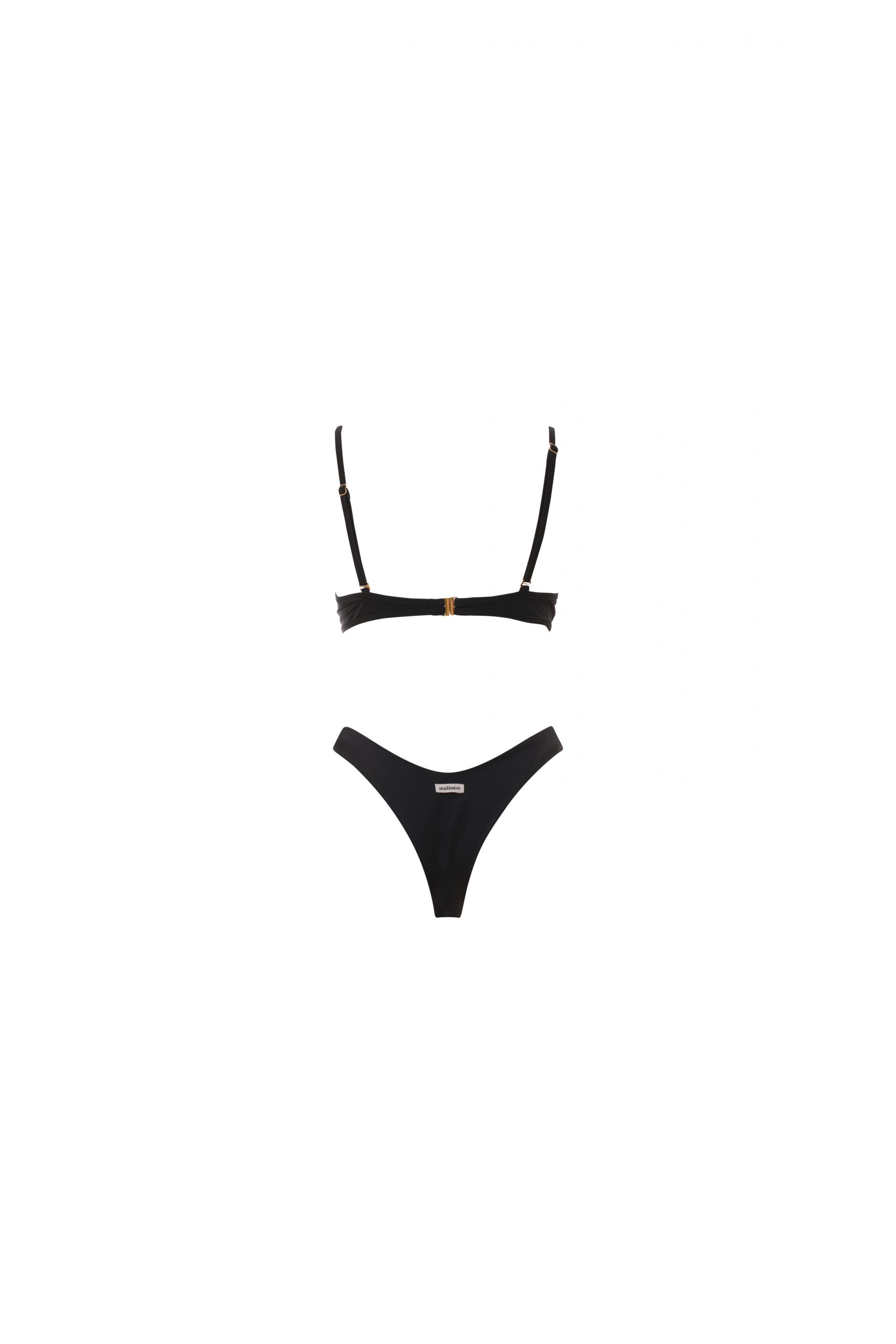 Joy is the bikini feminine and elegant, perfect for your summer days. Its fixed cup top, adjustable shoulder straps and clip closure gives you stability and security customizable to your needs. Lo briefs has a regular fit and a Brazilian. In solid color black in color. Made of. glossy lycra, for an elegant and bright look.