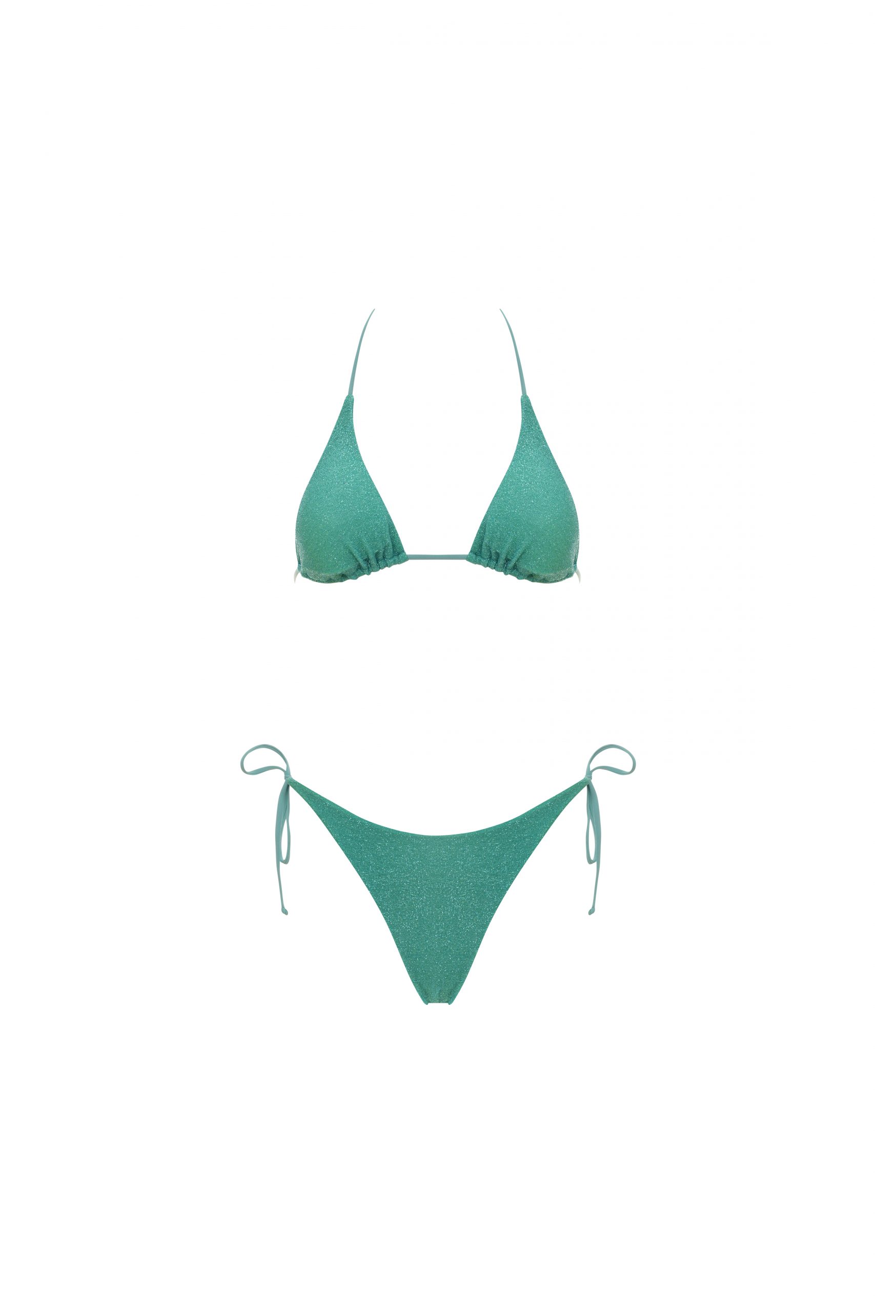 Kate is the bikini summer must-have. It combines a triangle top with adjustable drawstrings and removable cups and one briefs, also with adjustable side drawstrings and a leg length Brazilian.