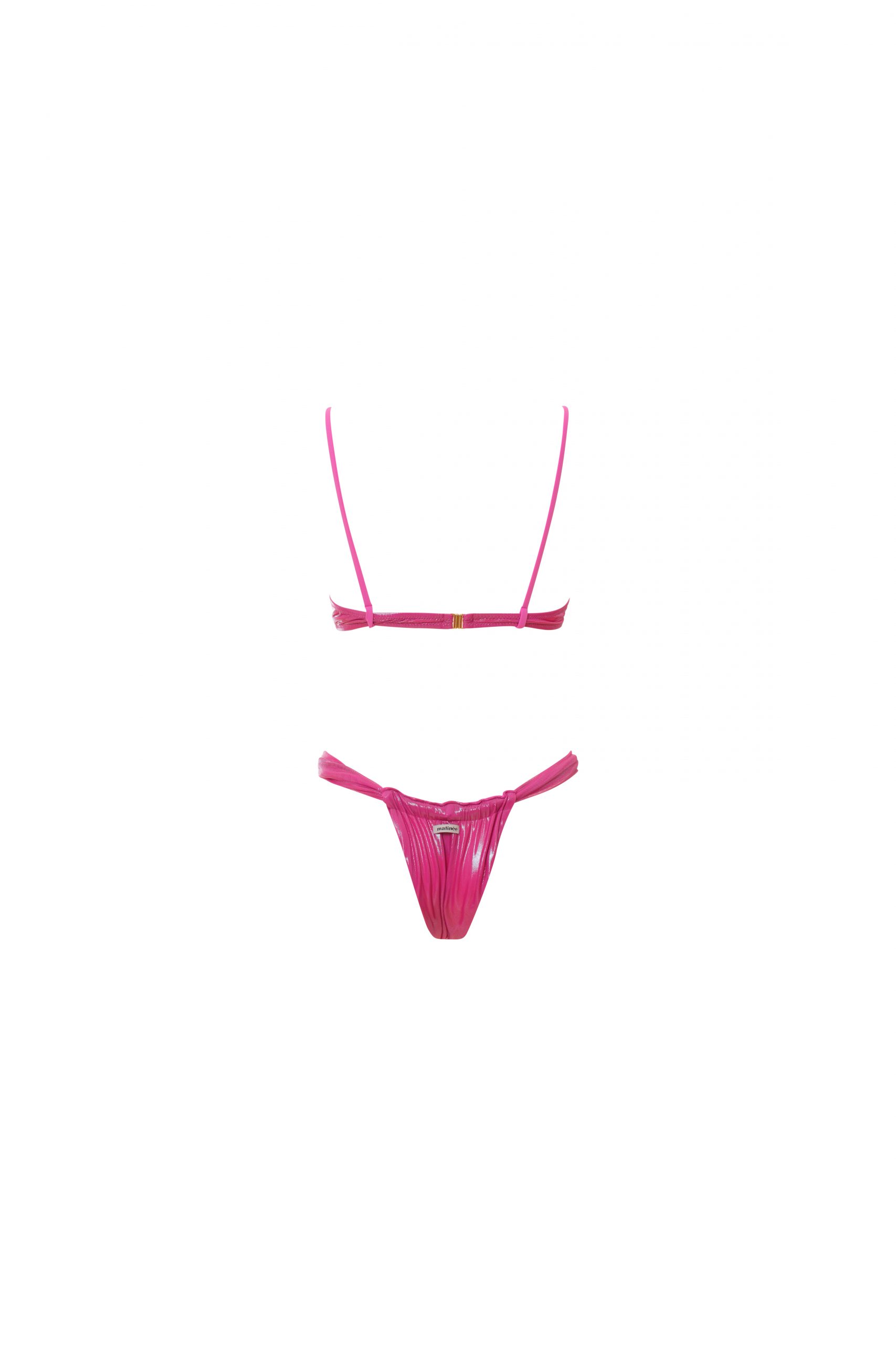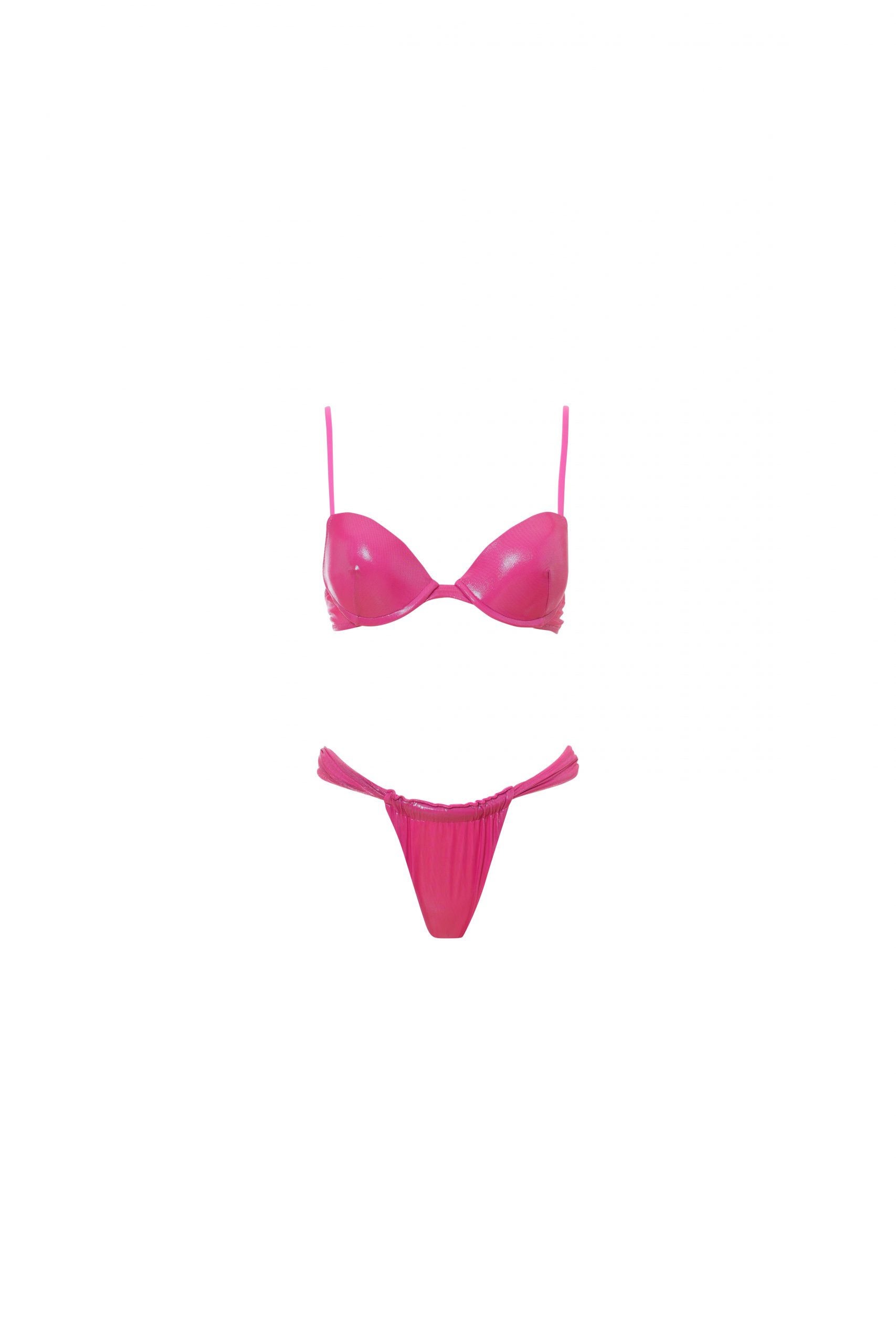 Lena is a bikini trendy and practical. Its push-up top with fixed cups is perfect for a sculpted and attractive cleavage, has a clip closure and adjustable straps. The briefs a Brazilian, has a seductive cut with a customizable leg length. In solid color fuchsia in color. Made of. microfiber and tulle, lightweight and breathable with elegant and feminine details.