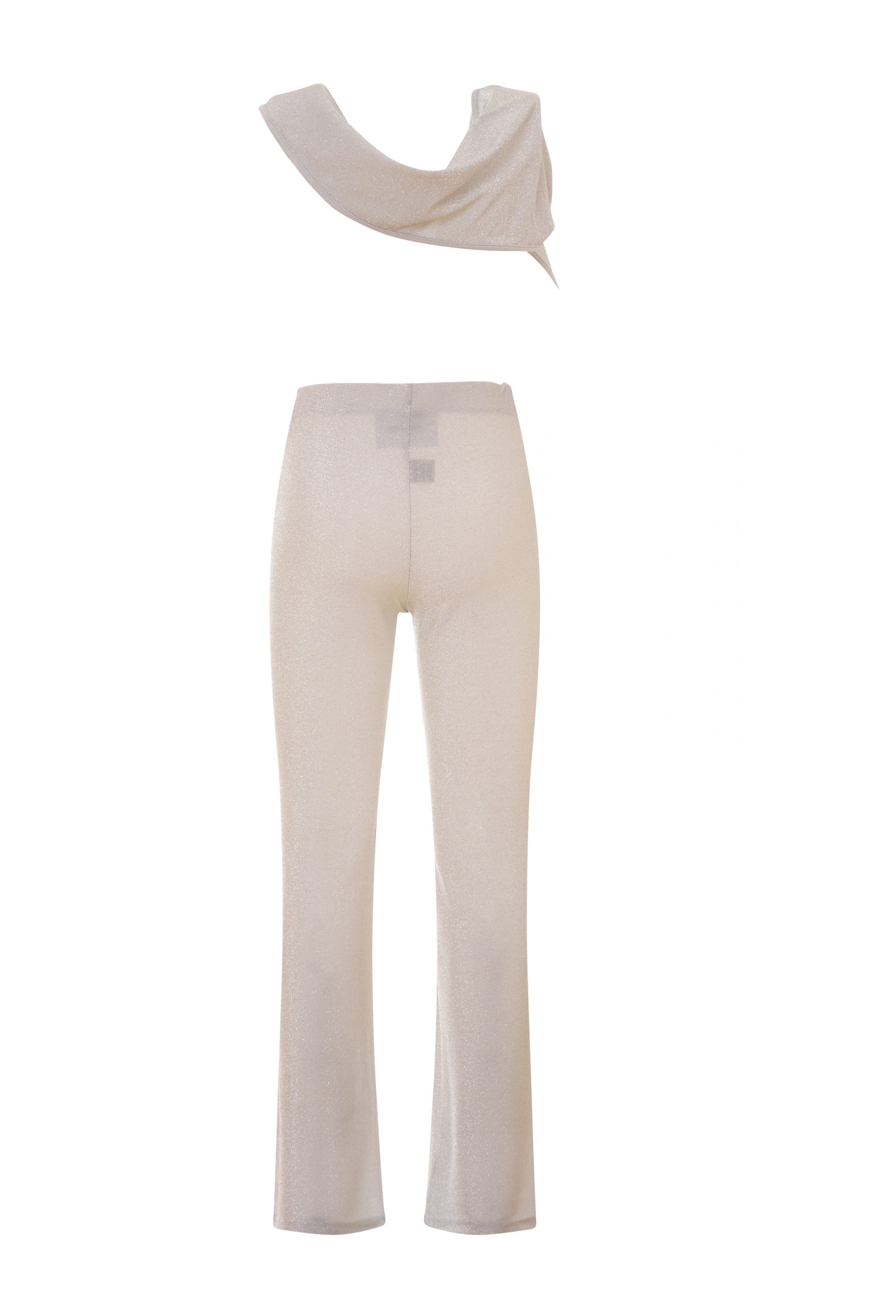 Lia is the jumpsuit with a deep front neckline, hood and bare back, perfect for trendy and daring looks. On the back are knotted ties that allow you to adjust the fit to your needs. Made of stretch lurex, the right compromise to shine with the best comfort. In solid white color. Care instructions: Hand wash in cold water.