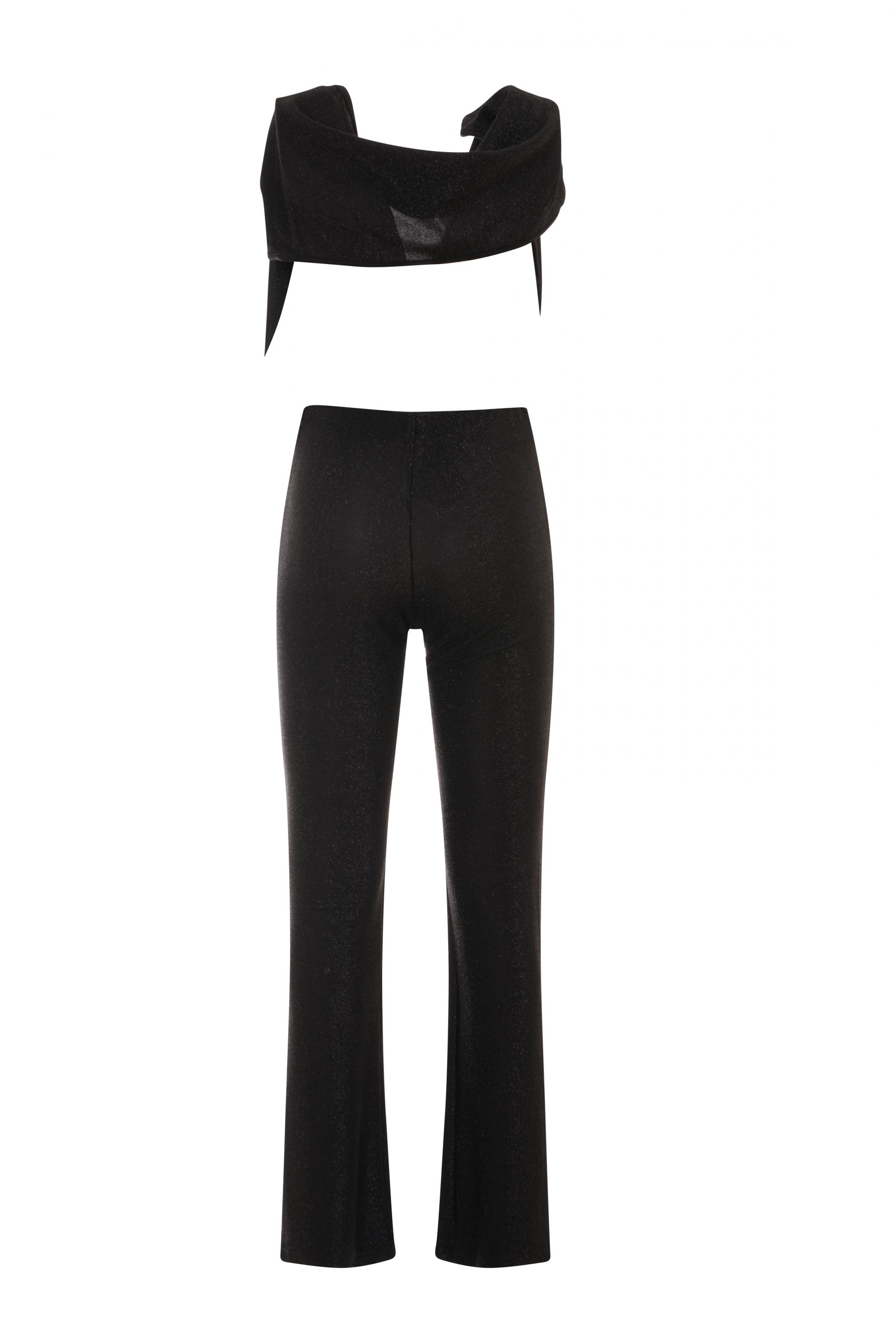 Lia is the jumpsuit with a deep front neckline, hood and bare back, perfect for trendy and daring looks. On the back are knotted ties that allow you to adjust the fit to your needs. Made of stretch lurex, the right compromise to shine with the best comfort. In solid black color. Care instructions: Hand wash in cold water.
