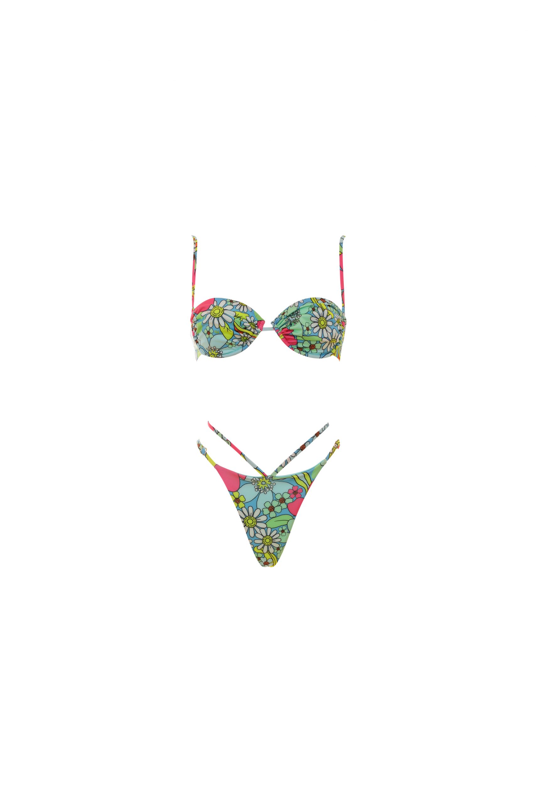 Marina is the bikini bestseller of summer, for a flawless and bright style. Combine a slim fit top, with underwire without padding and adjustable and removable suspenders, allowing you to adjust it to your needs. And one briefs With gathers and double drawstring. The closure of the top is clip-on, secure and convenient. In fantasy Light blue pop of color for super trendy looks. Made from microfiber, a lightweight and durable fabric ideal for comfortable swimwear.