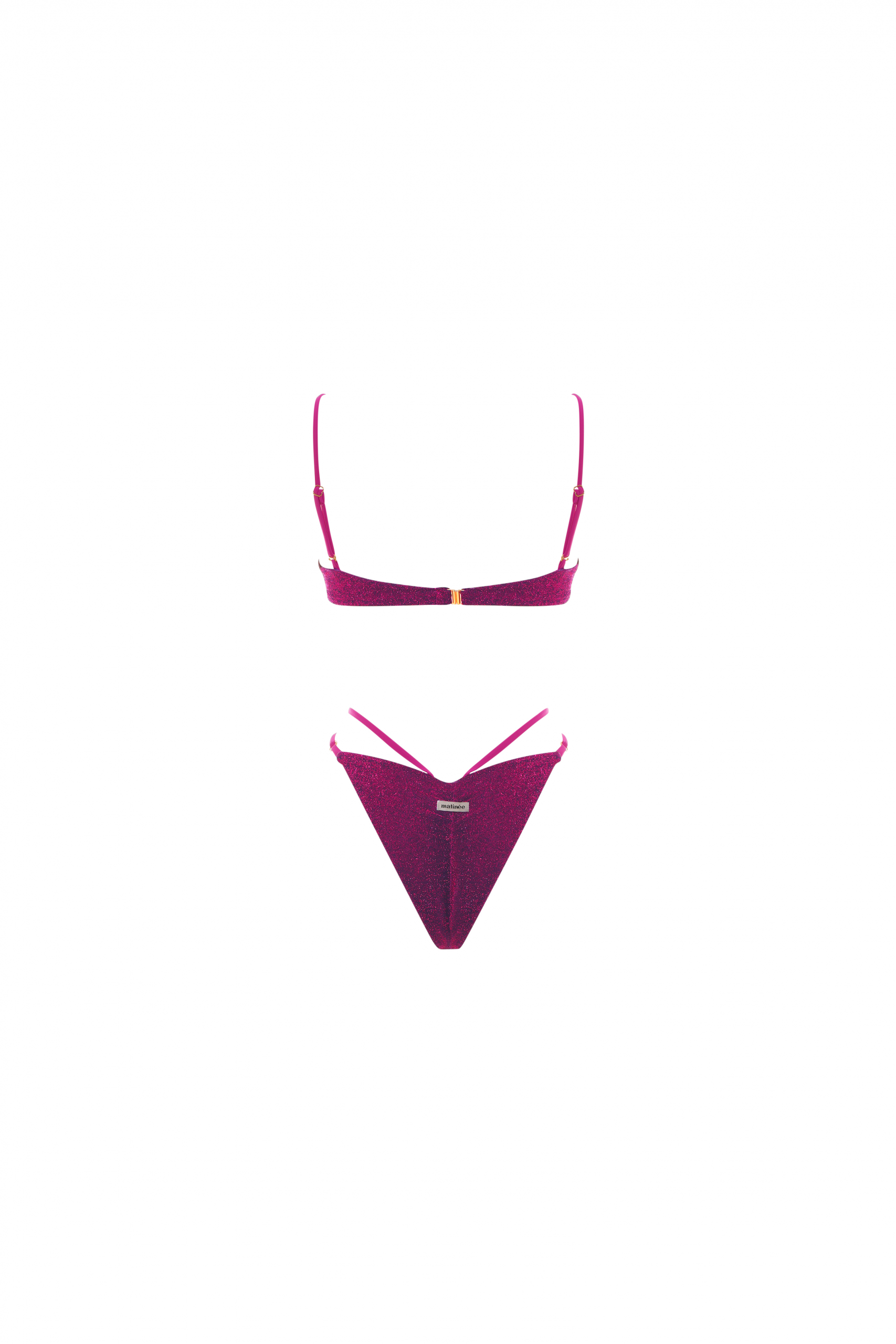 Marina is summer's bestselling bikini for flawless, bright style. It combines a slim-fit top with underwire without padding and adjustable, removable straps, allowing you to adjust it to your needs. And a scrunched brief with gathers in the back and double ties. The top's closure is clip-on, secure and comfortable. The stretch lurex fabric is just the right compromise to shine with the best comfort. In solid fuchsia color. The model is wearing a size S. She is 175 cm tall, measures 78 cm bust, 59 cm waist and 90 cm hips. Care instructions: Hand wash in cold water.