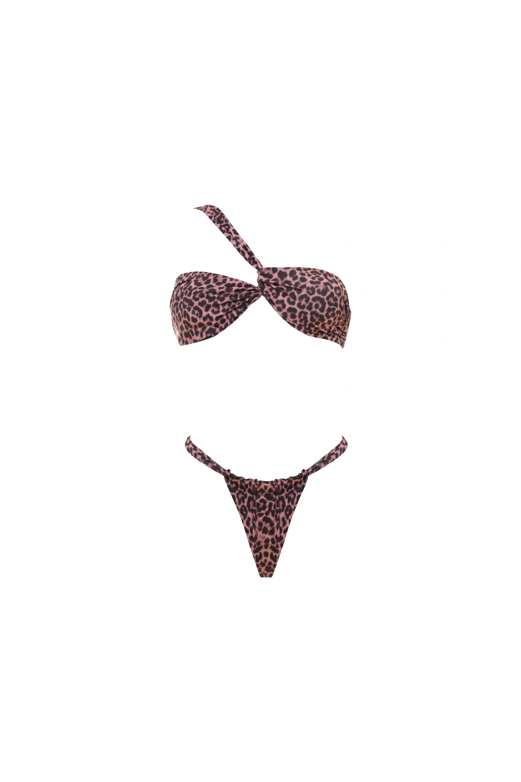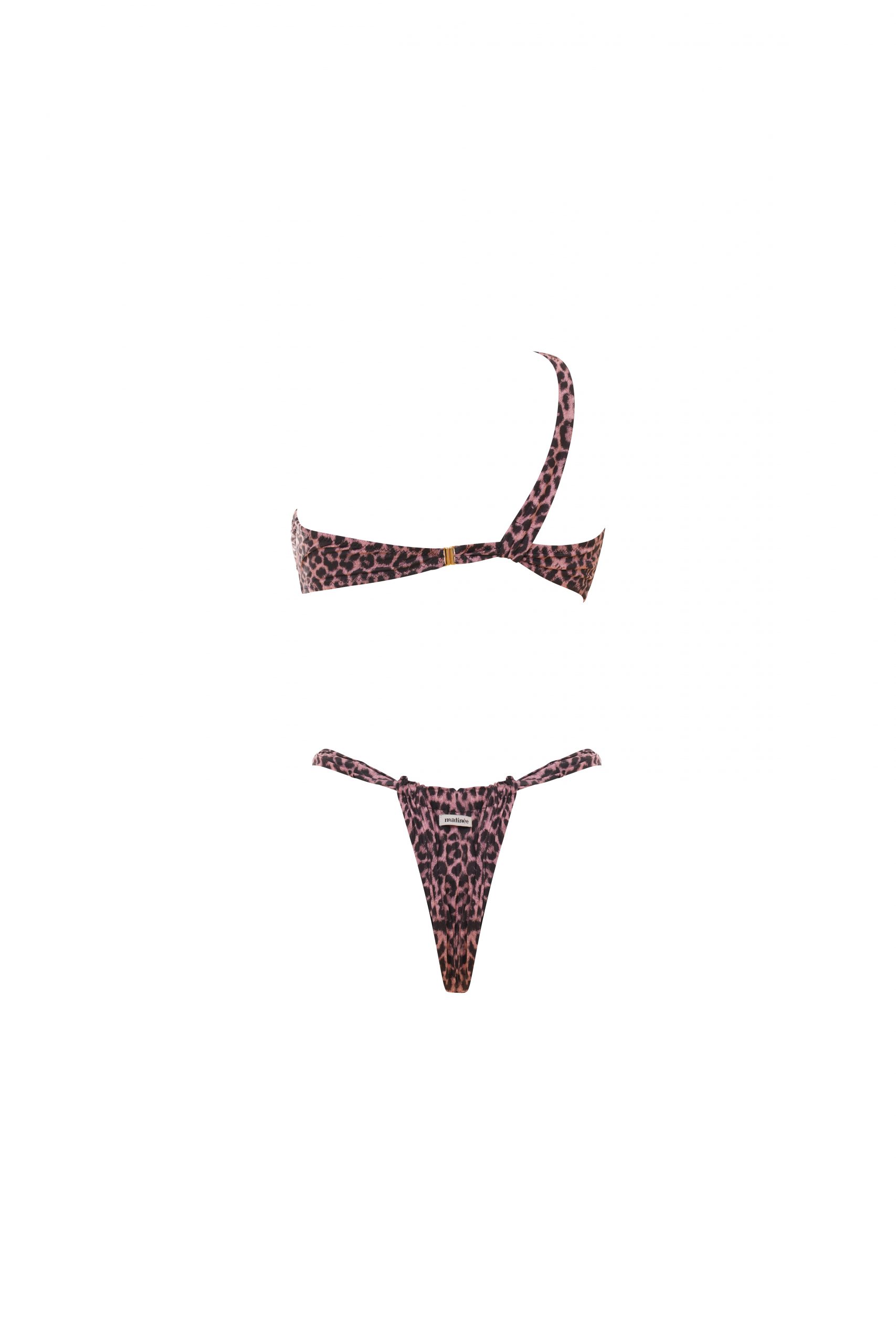 Mila is the bikini particular and refined composed of a one-shoulder top with braiding on the front and one briefs low-waisted with Brazilian. The top has a removable cup to give you flexibility and comfort, and its closure is clip-on, convenient and secure. In fantasy speckled pink color for bold and distinctive looks. Made from microfiber, a lightweight and durable fabric perfect for comfortable swimwear.