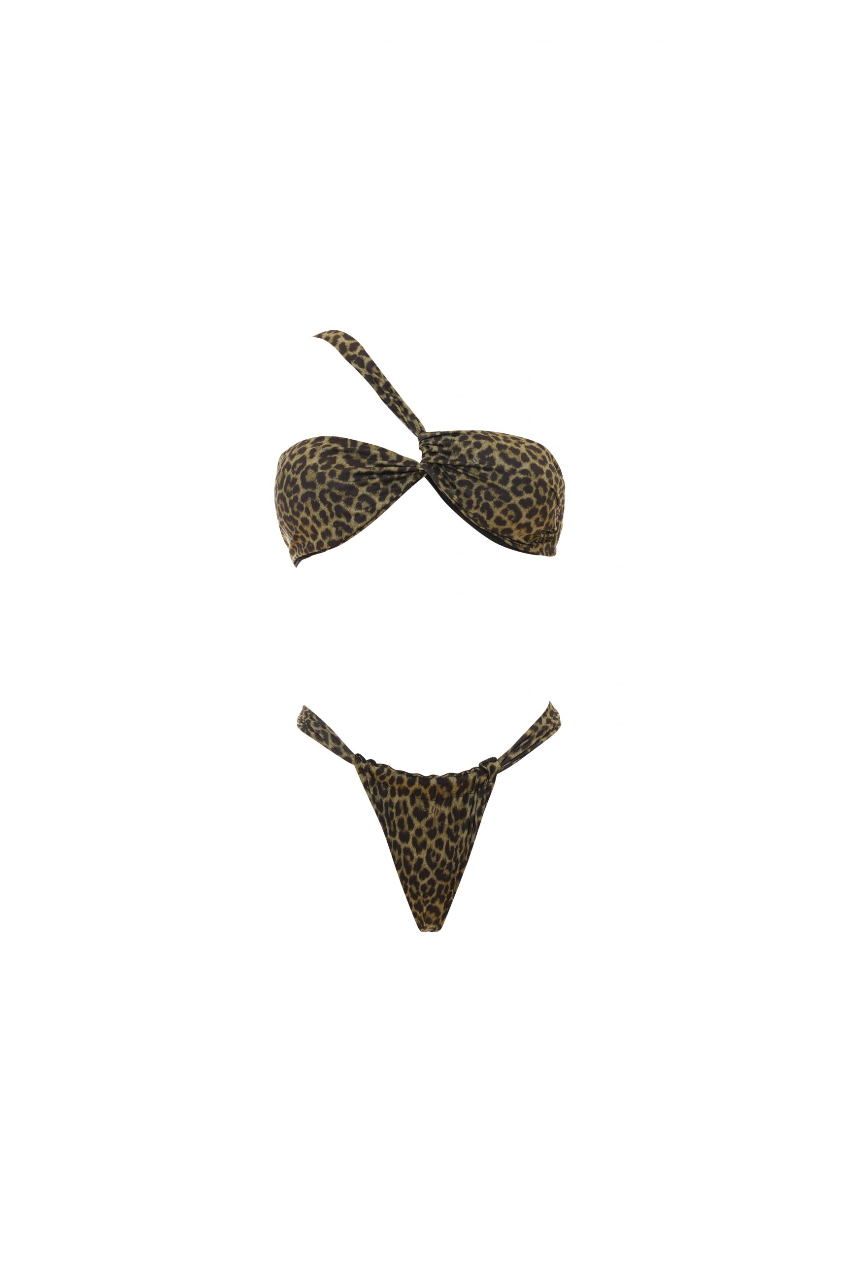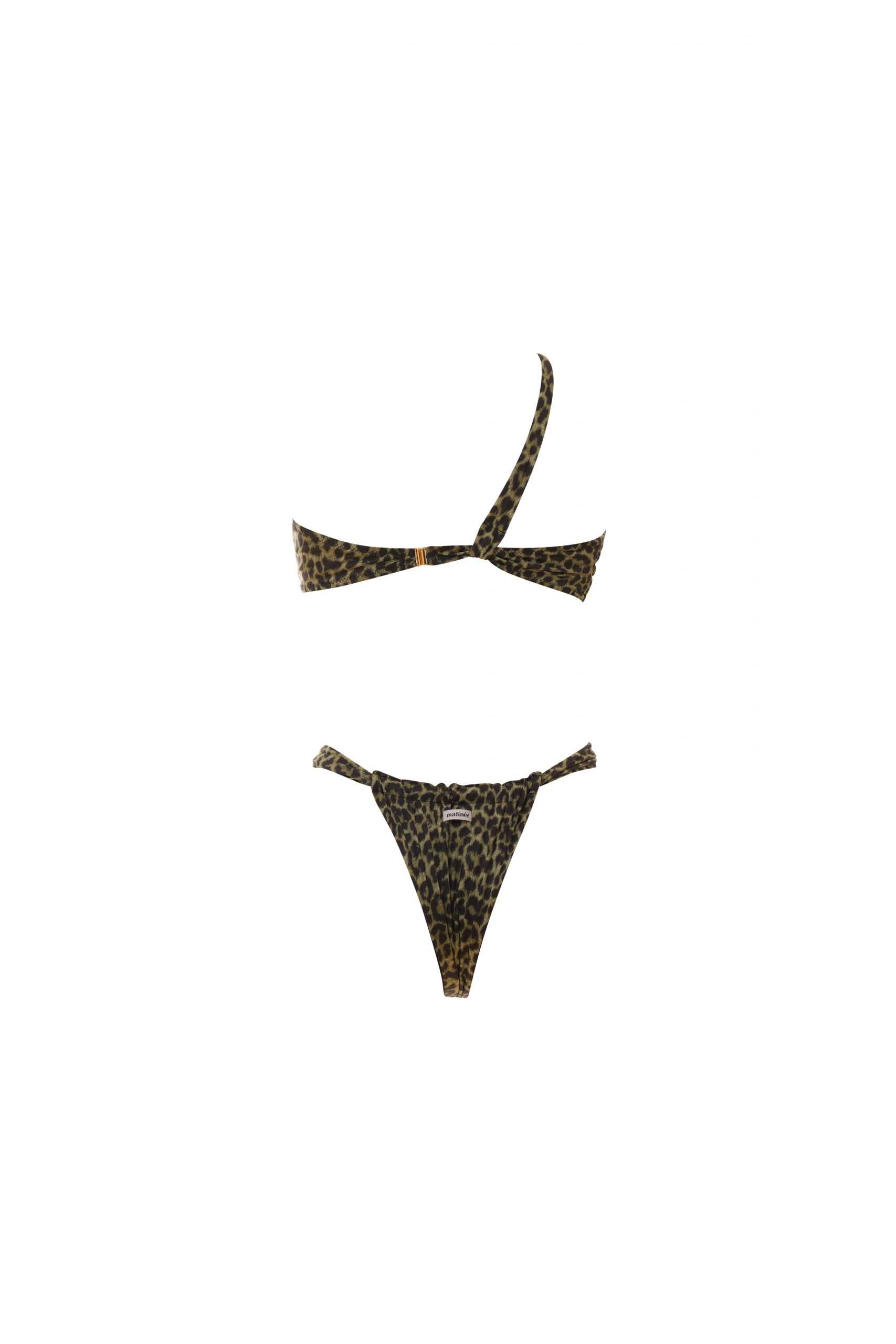 Mila is the bikini particular and refined composed of a one-shoulder top with braiding on the front and one briefs low-waisted with Brazilian. The top has a removable cup to give you flexibility and comfort, and its closure is clip-on, convenient and secure. In fantasy spotted green color for bold and distinctive looks. Made from microfiber, a lightweight and durable fabric perfect for comfortable swimwear.