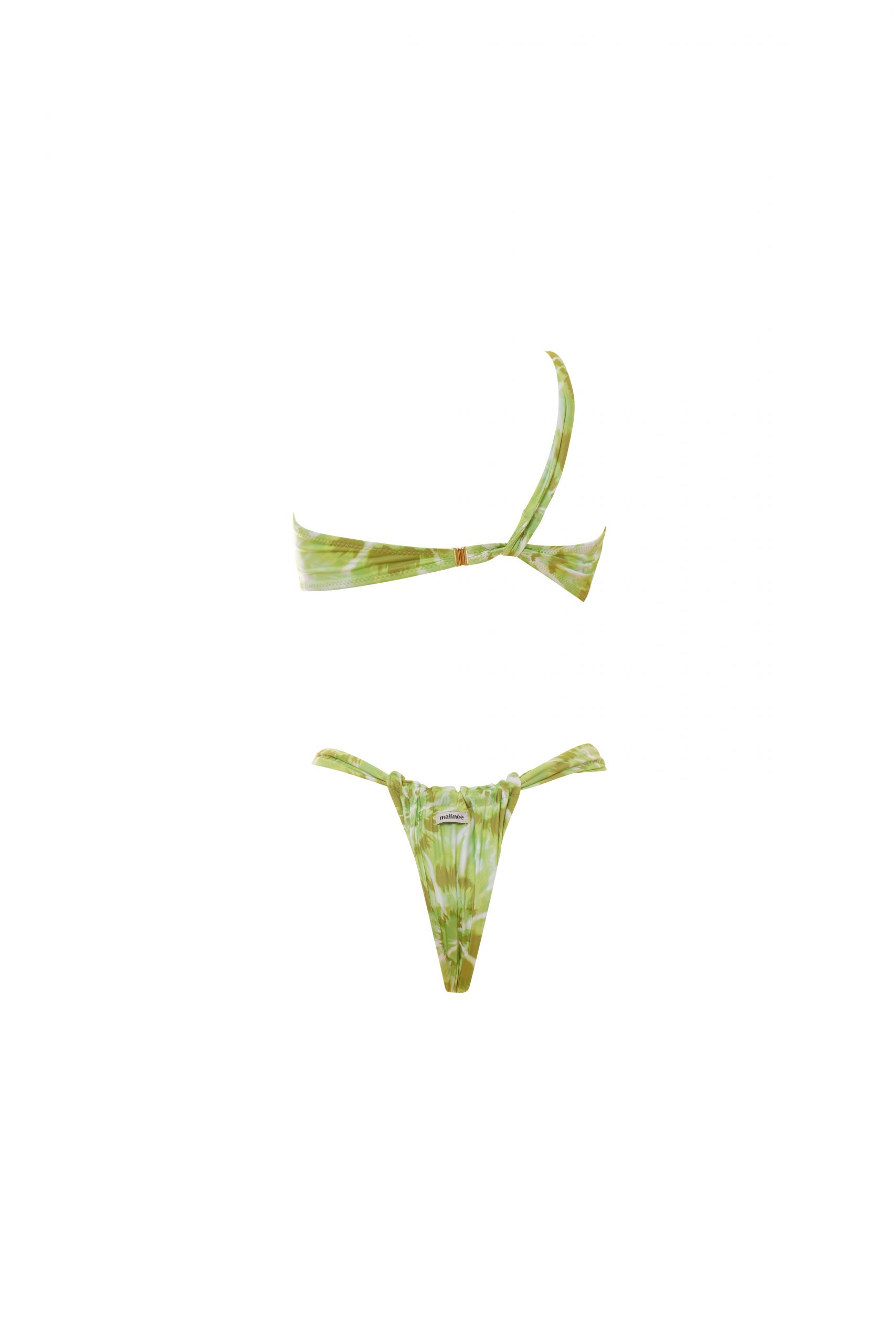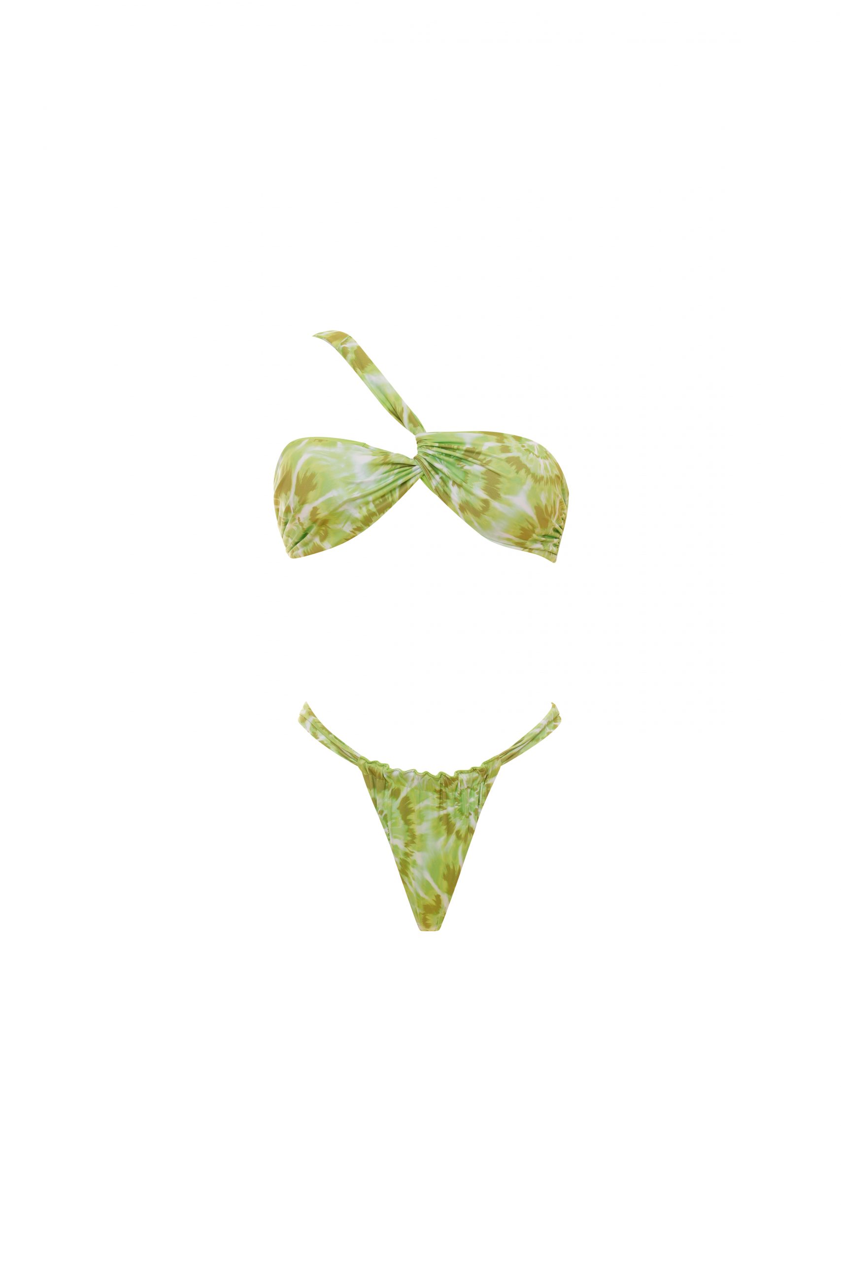 Mila is the bikini particular and refined composed of a one-shoulder top with braiding on the front and one briefs low-waisted with Brazilian. The top has a removable cup to give you flexibility and comfort, and its closure is clip-on, convenient and secure. In fantasy tie dye in green, a colorful and vibrant pattern for a bohemian and trendy style. Made of microfiber, a lightweight and durable fabric perfect for comfortable swimwear.