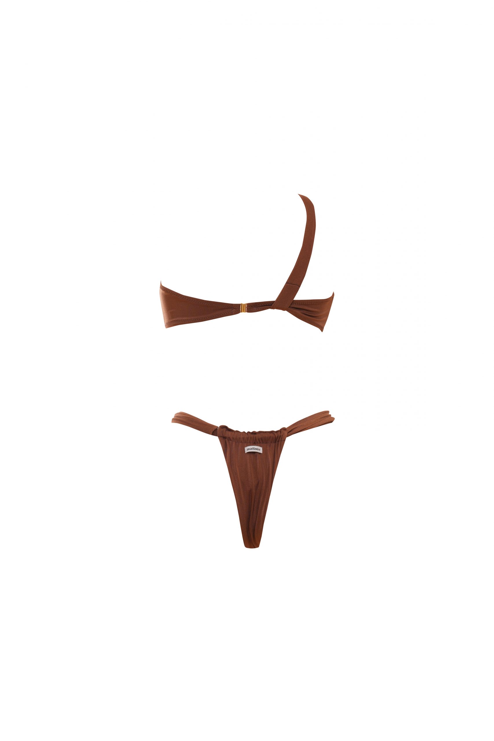 Mila is the bikini particular and refined composed of a one-shoulder top with braiding on the front and one low-rise briefs With a brazilian-style bottom. The top has a removable cup to give you flexibility and comfort, and its closure is clip-on, convenient and secure.