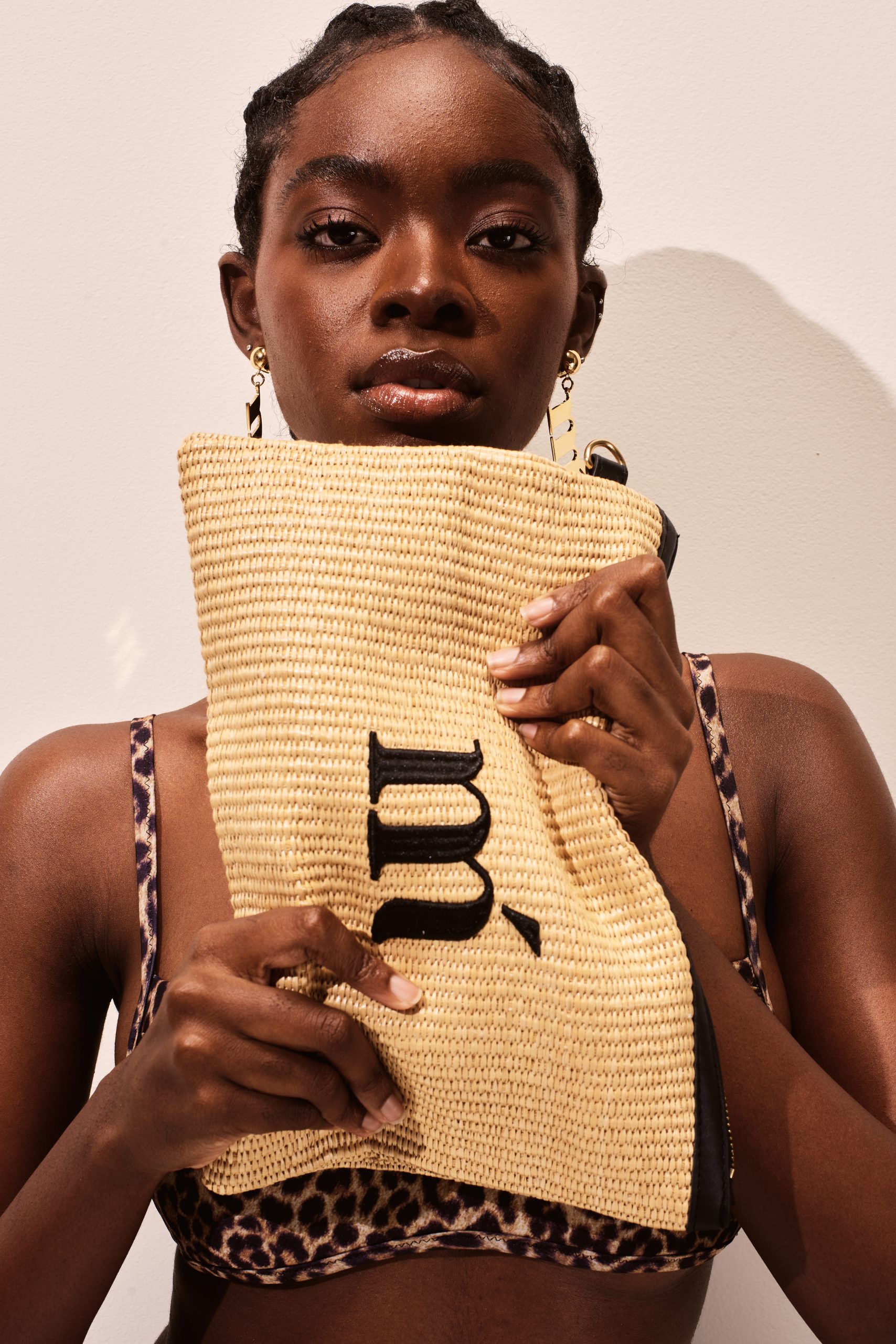Milano is the elegant polycanvas clutch bag. Inside it has a practical and spacious pocket with zipper closure and two open pockets. Equipped with convenient wrist lace, ideal for carrying it securely, and zipper closure to protect your personal items. Perfect for any occasion, this clutch combines style and functionality. In solid beige color with contrasting black logo. Measures 20cm in height and 30cm in width.