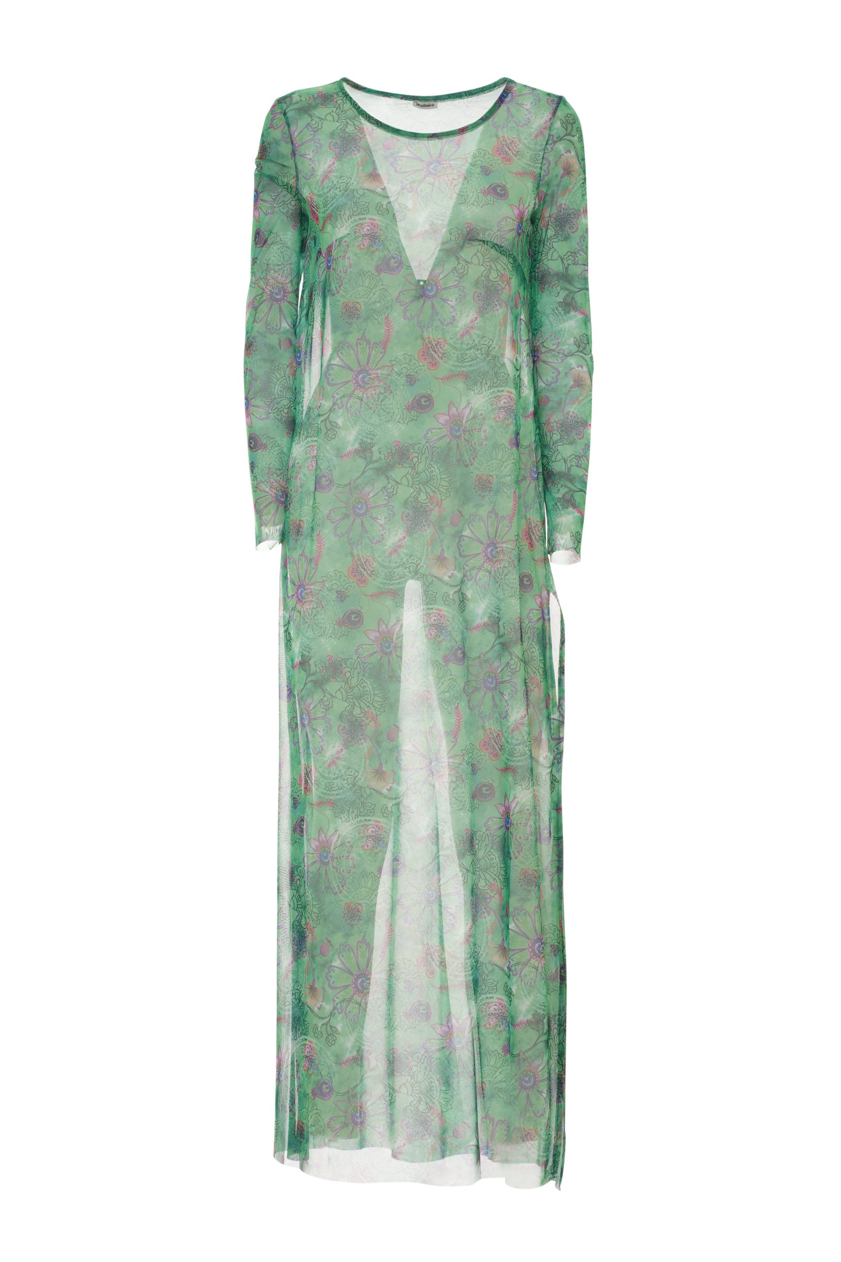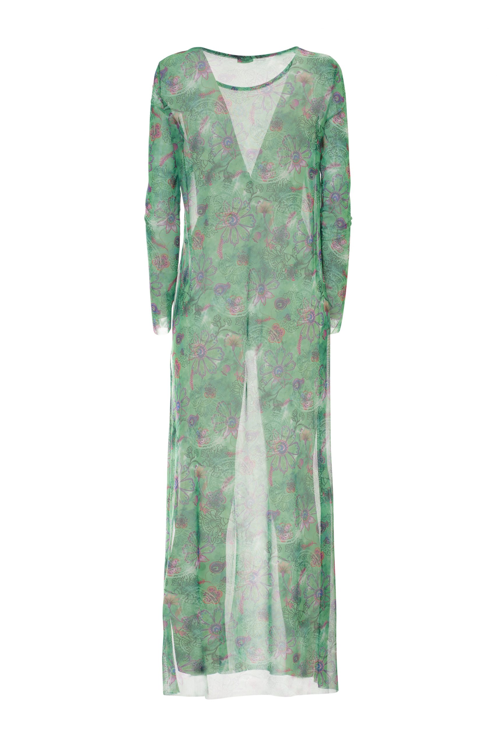 Selene is thedress with long sleeve and sheer, perfect for creating a glamorous look for your summer days at the beach, pool or boat. Made from tulle, a light and transparent fabric for elegant and feminine details. In fantasy green-colored bohemia.