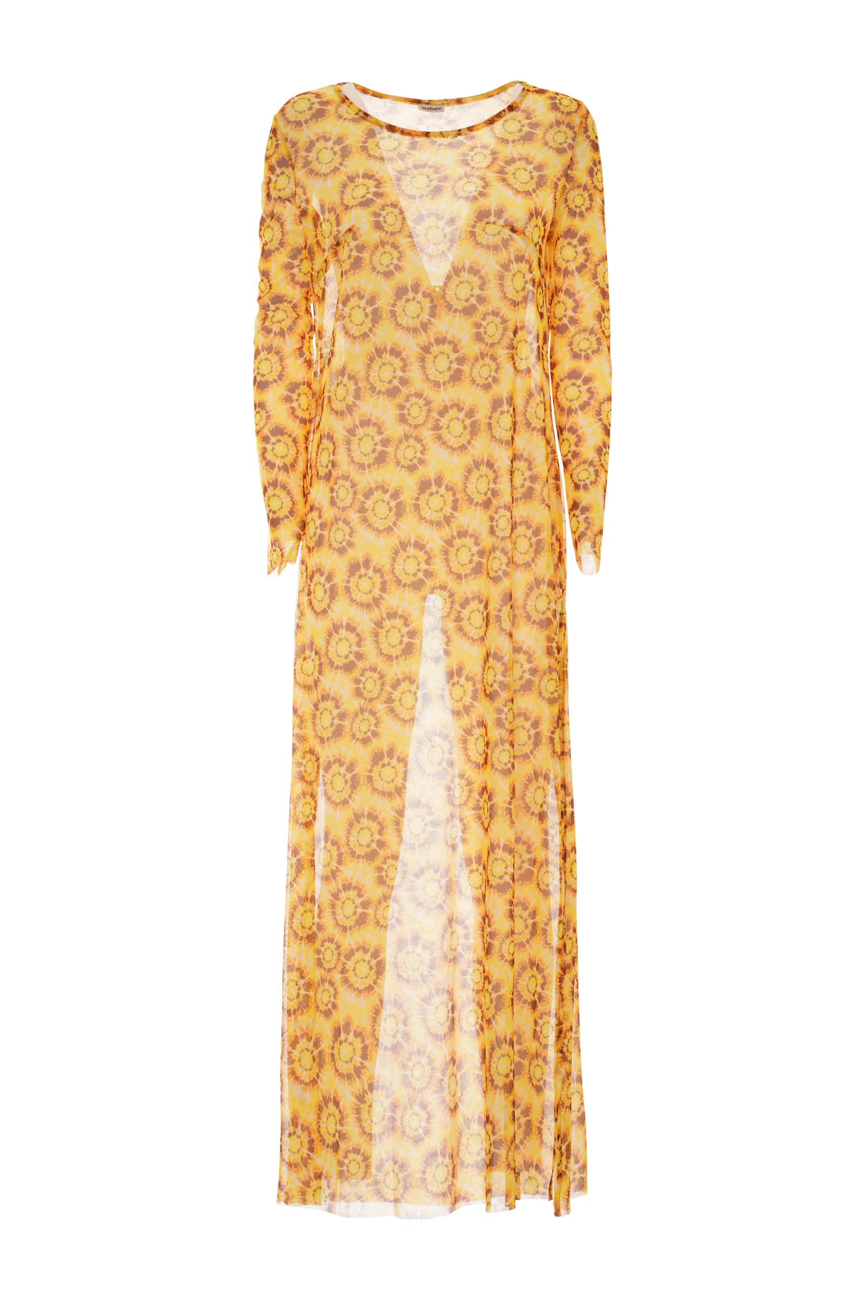 Selene is thedress with long sleeve and sheer, perfect for creating a glamorous look for your summer days at the beach, pool or boat. Made from tulle, a light and transparent fabric for elegant and feminine details. In fantasy Yellow-colored tie dye.